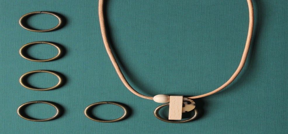Verschillende sieraden bevatten ook onderdelen gemaakt van gerecyclede- of restmaterialen.