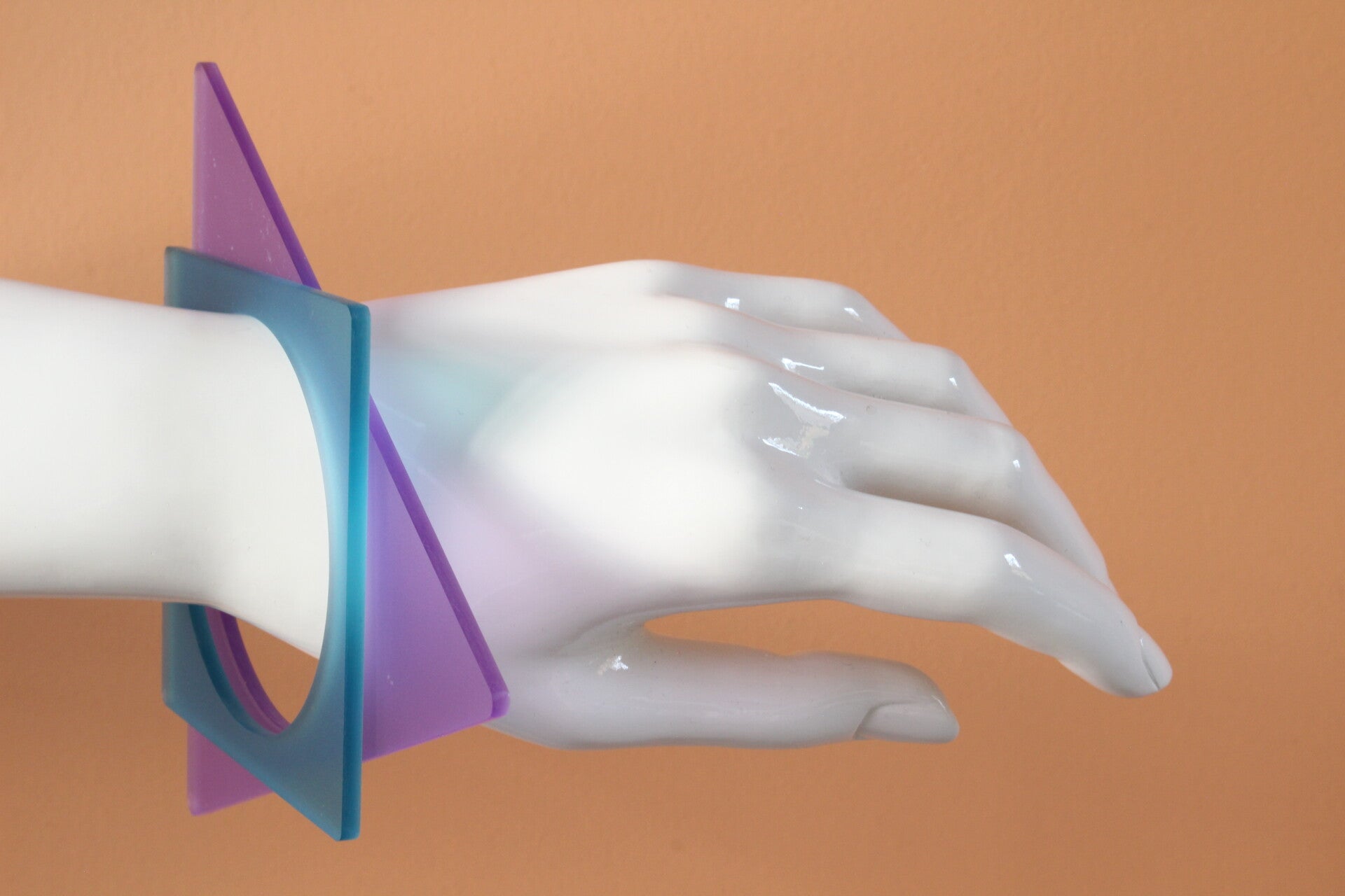 Armband van opaal (lichtdoorlatend) mat paars acrylaat.