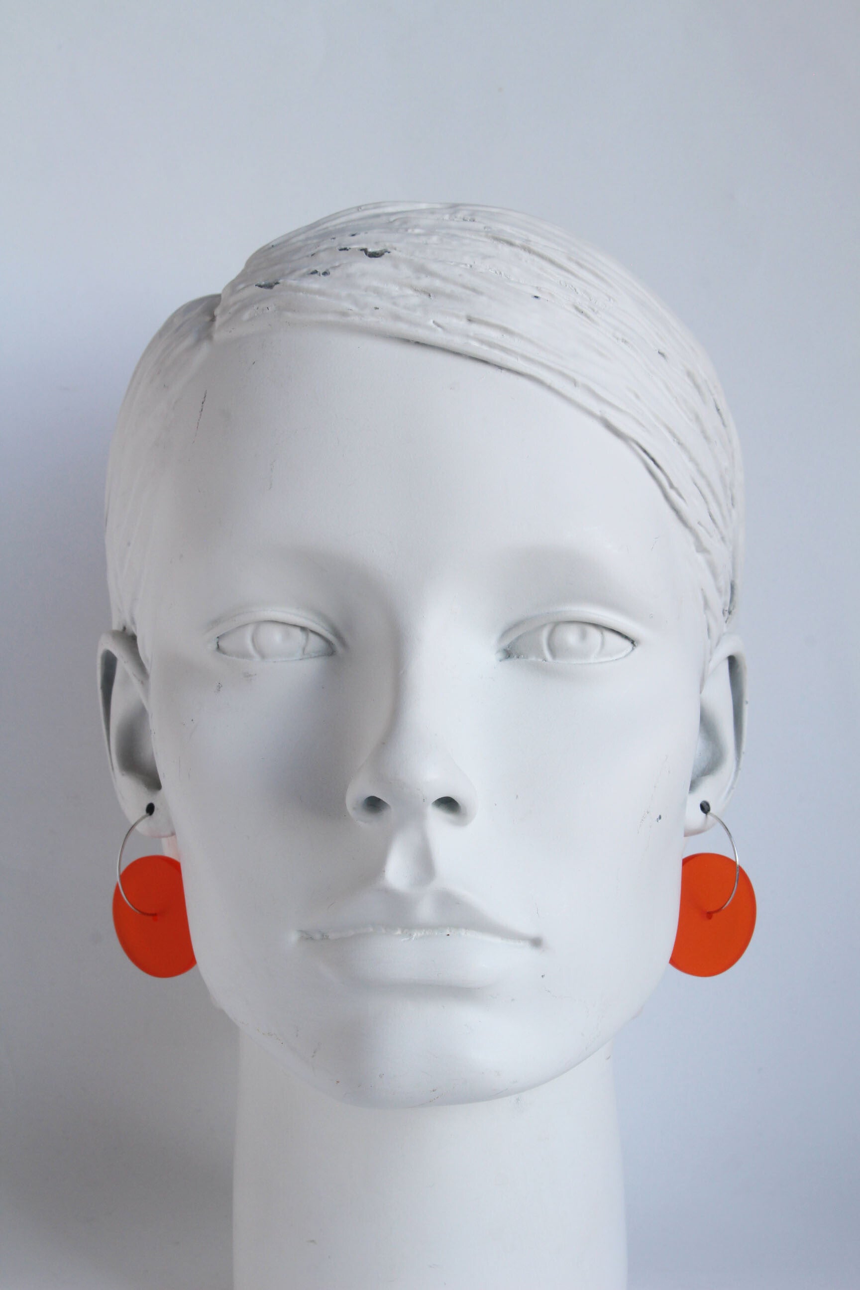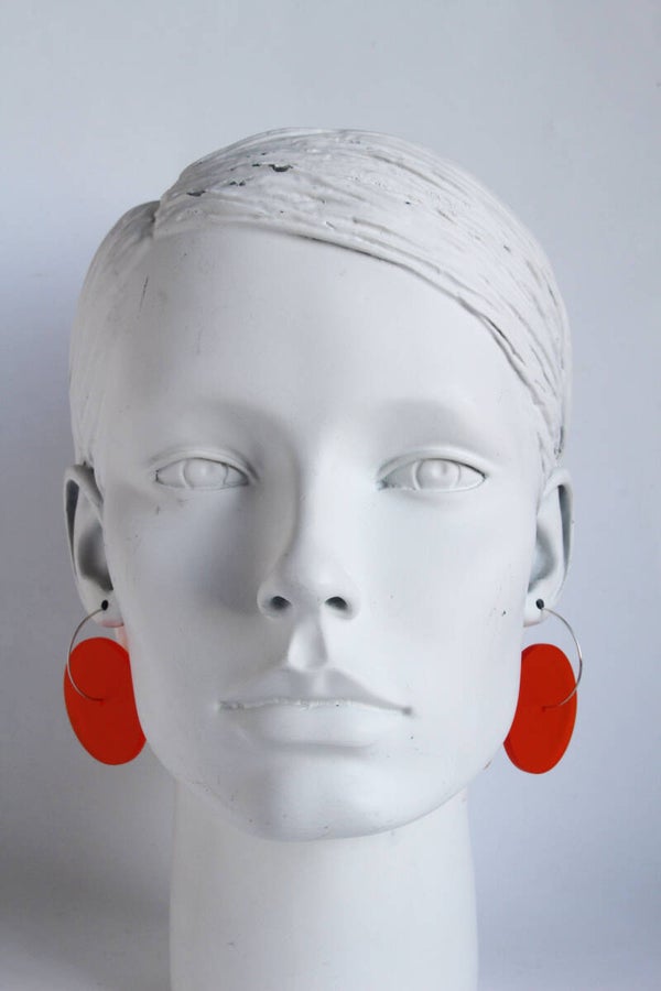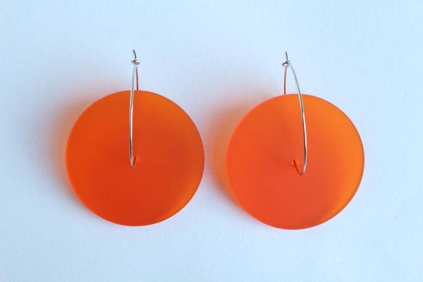 Oorbellen van opaal (lichtdoorlatend) mat oranje acrylaat aan oorringen van hypoallergeen rvs.