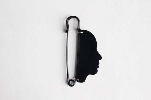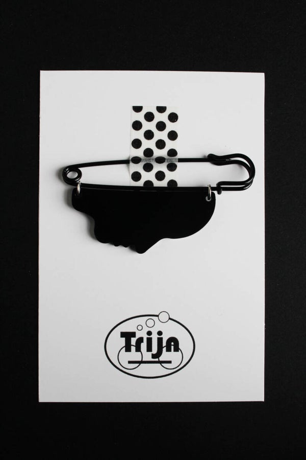 Brochespel van zwart geverfd metaal en zwart plexiglas