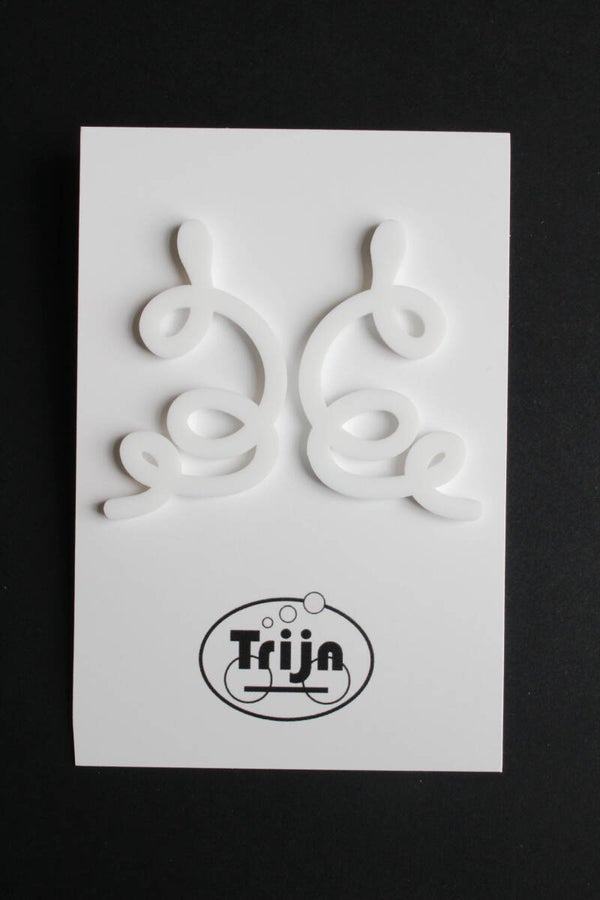 Oorbellen van wit acrylaat met stekers van hypoallergeen rvs.