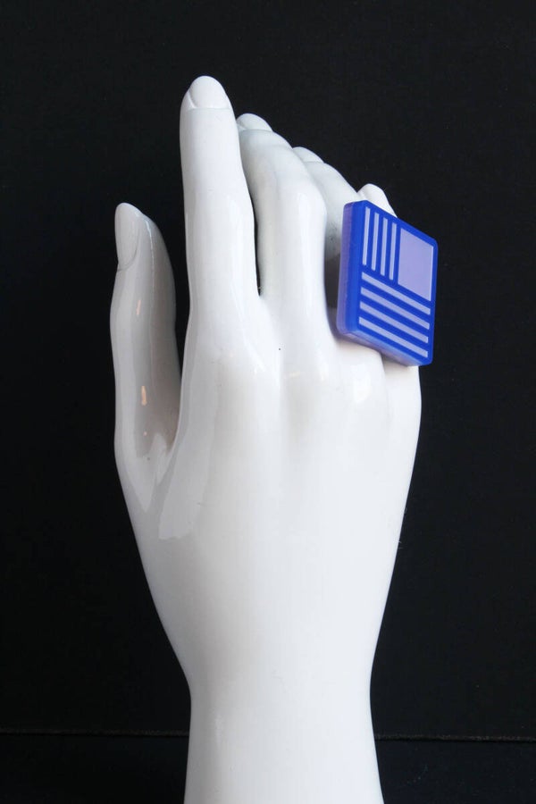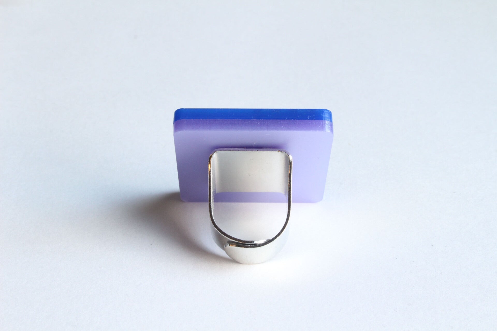 Verstelbare metalen ring van blauw en metallic lavendel acrylaat