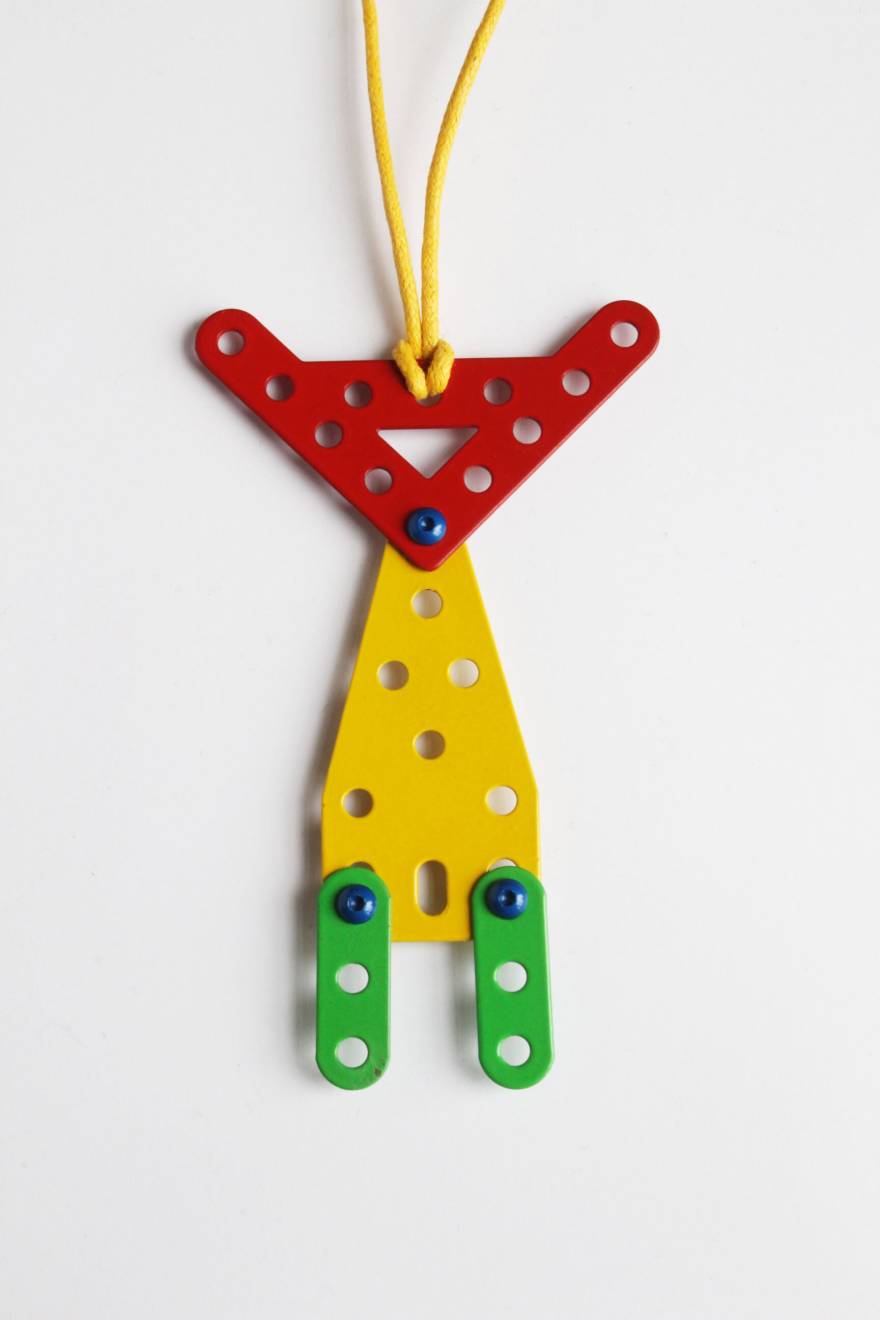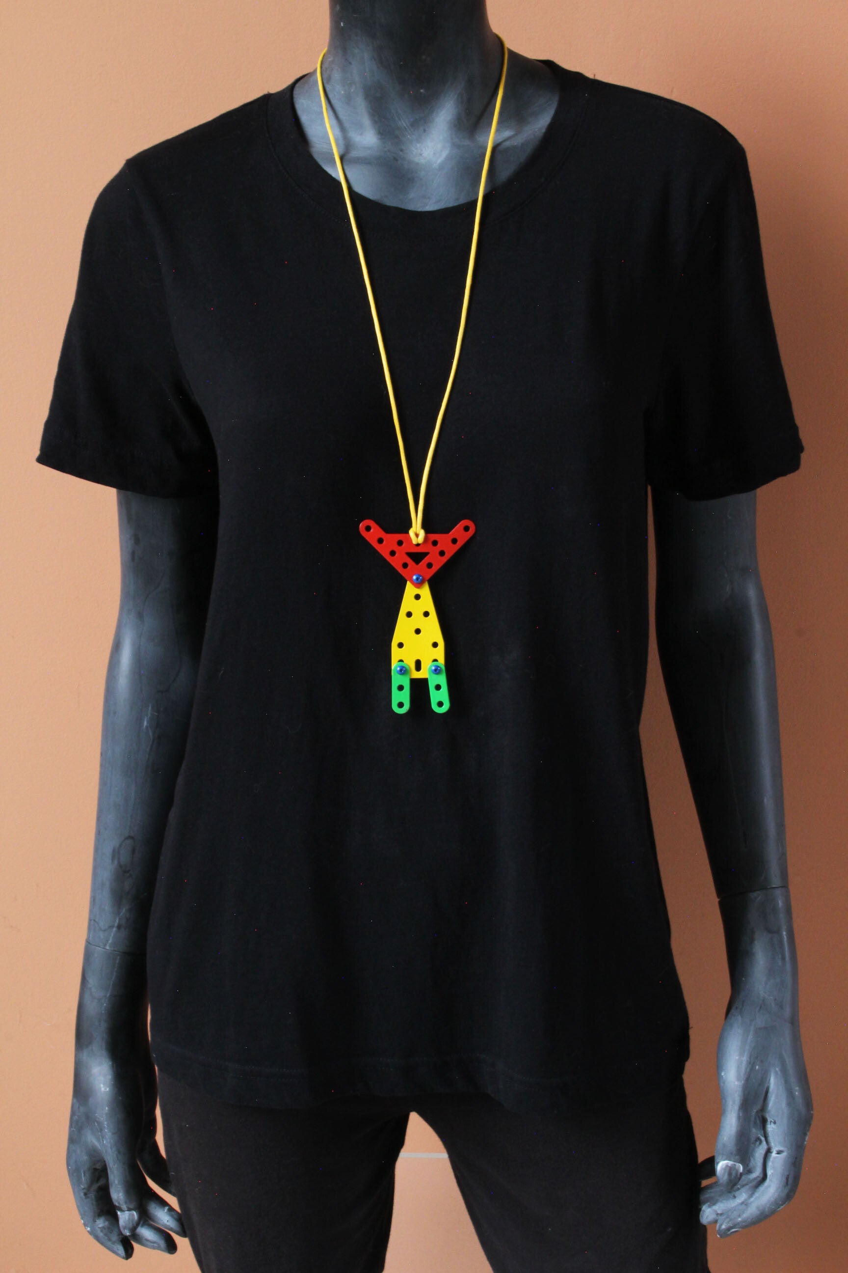 Ketting van geupcycled metaal aan een gewaxt katoenkoord. De verschillende onderdelen kunnen bewegen.