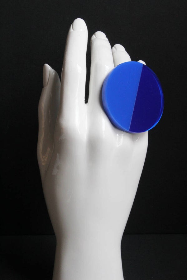 Verstelbare metalen ring van blauw en blauw-spiegel acrylaat