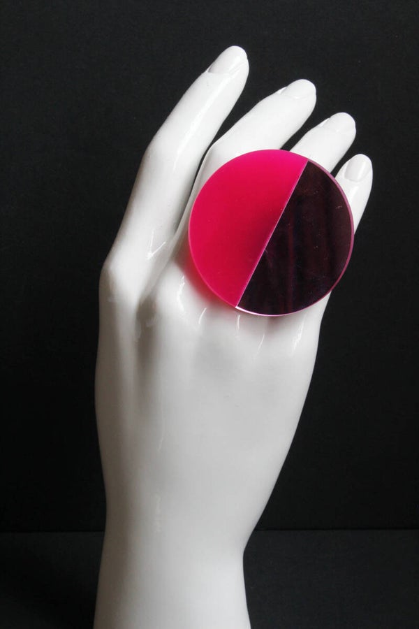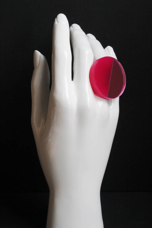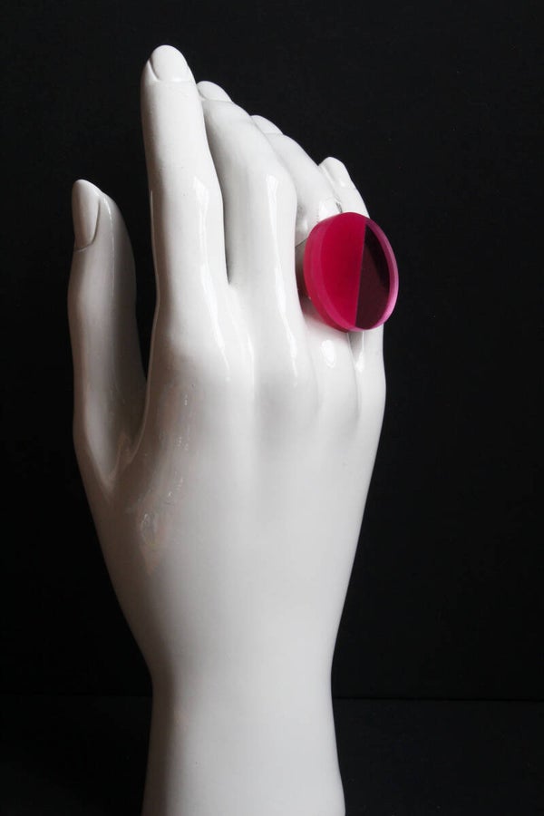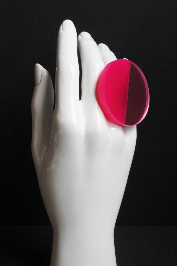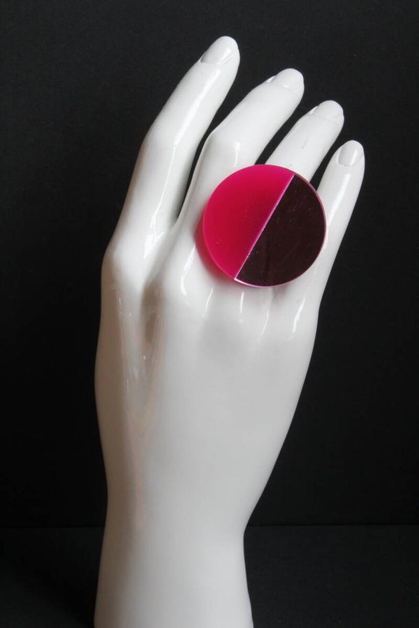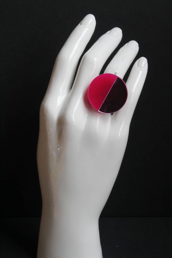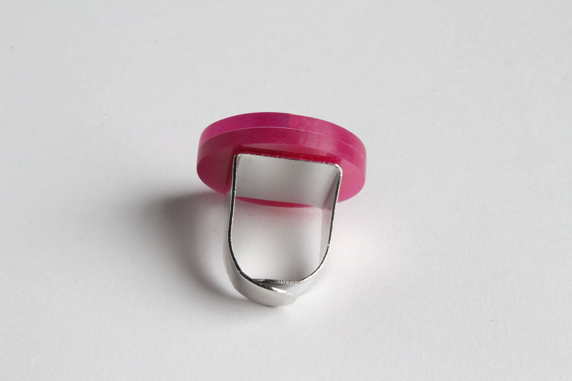 Verstelbare metalen ring van roze en roze-spiegel acrylaat