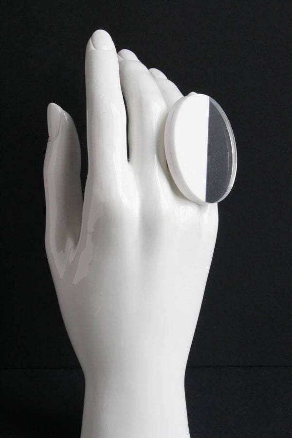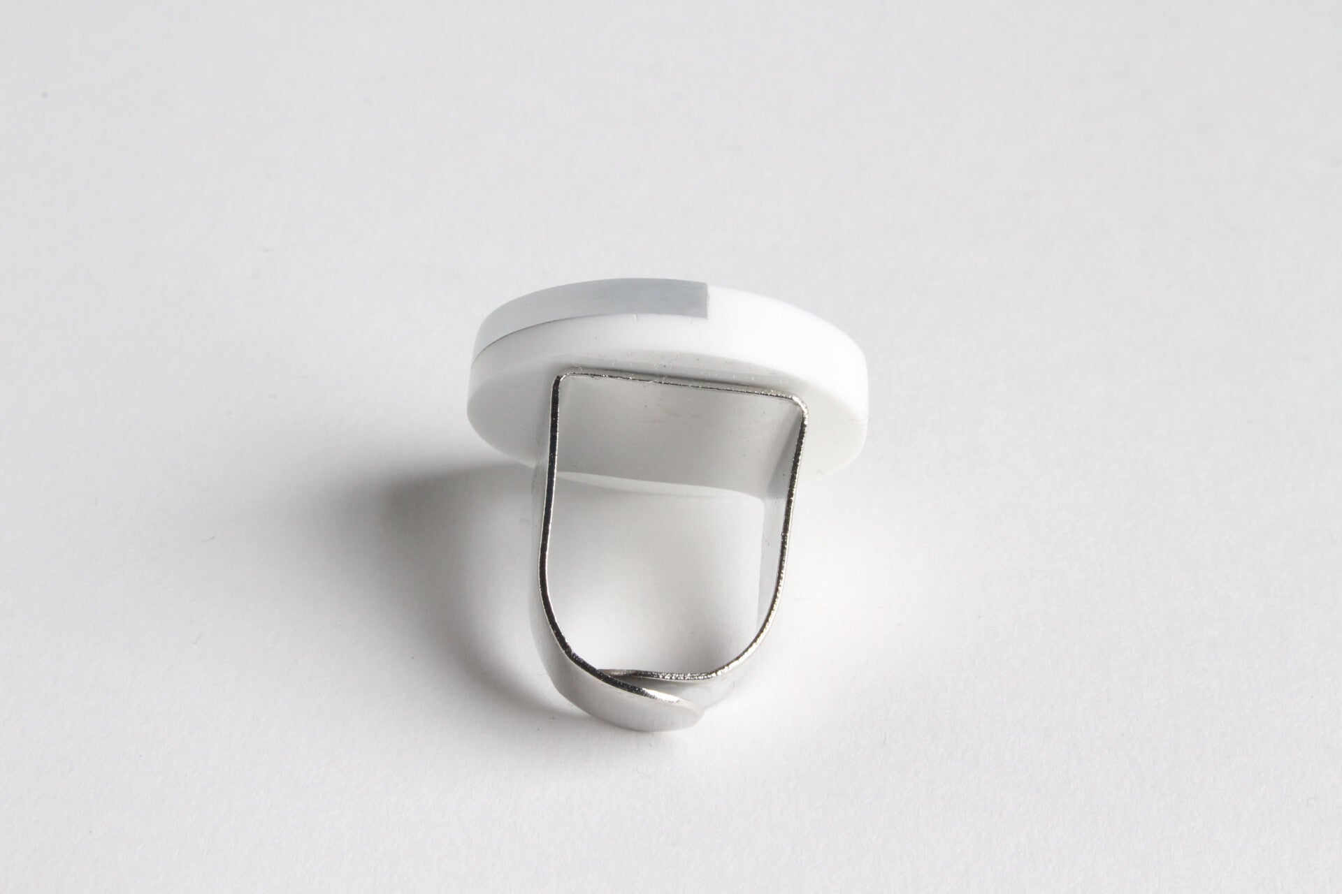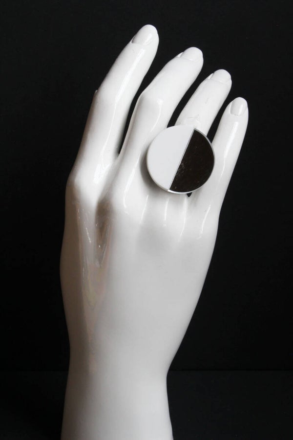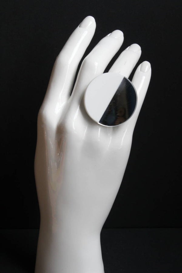 Verstelbare metalen ring van wit en zilver-spiegel acrylaat