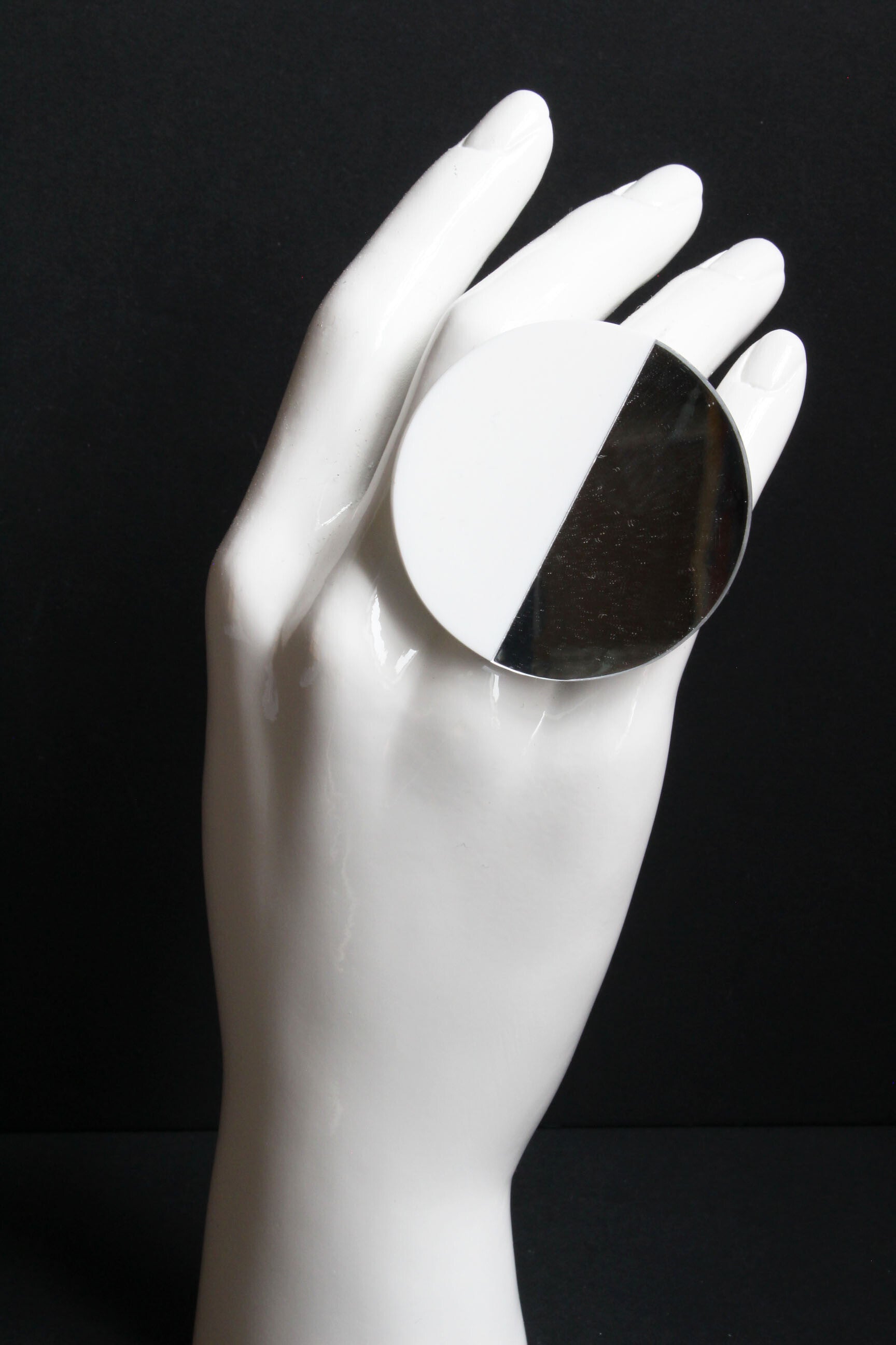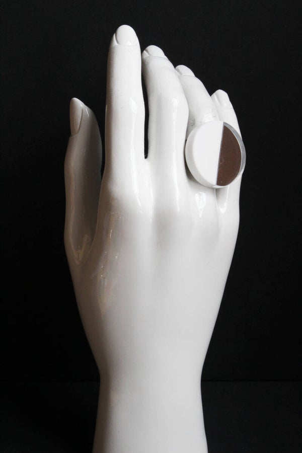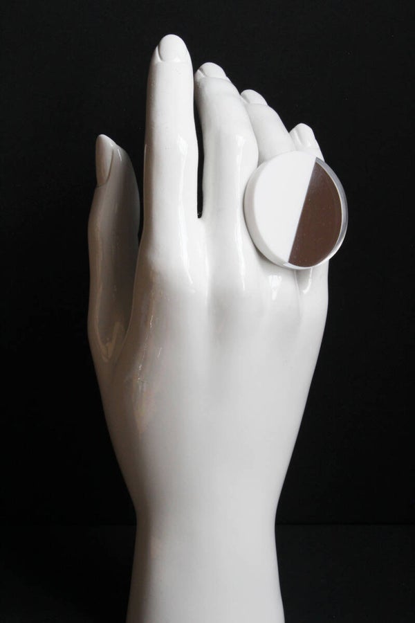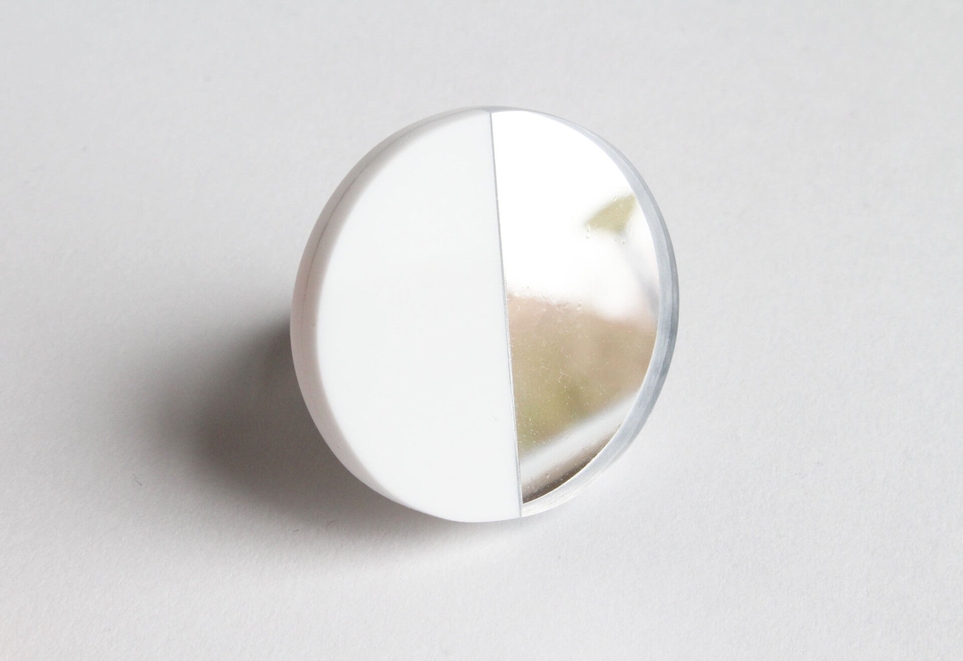 Verstelbare metalen ring van wit en zilver-spiegel acrylaat