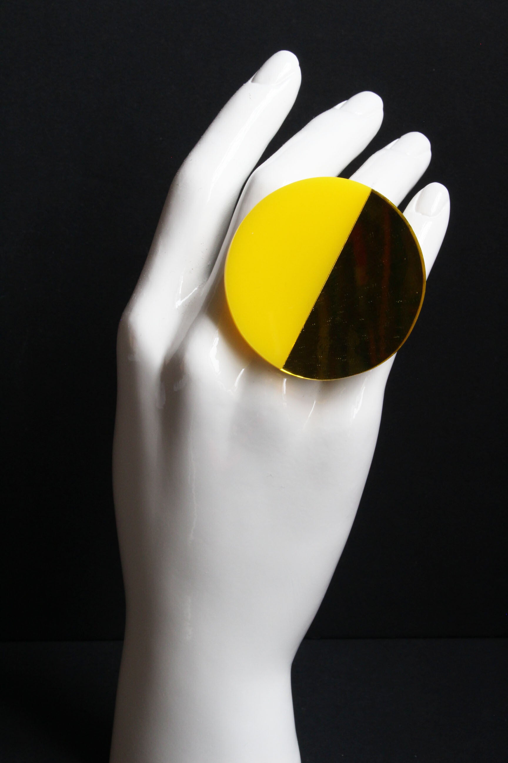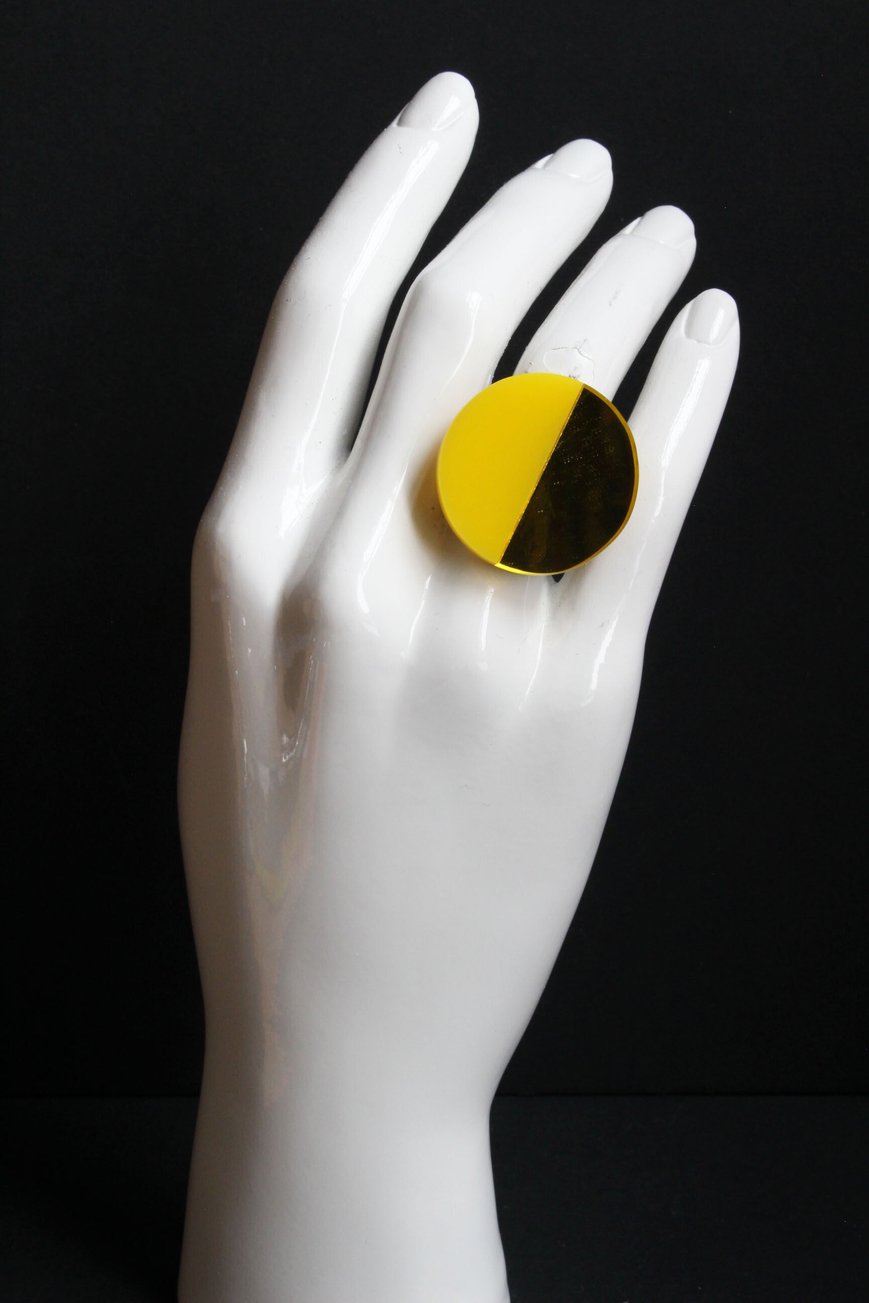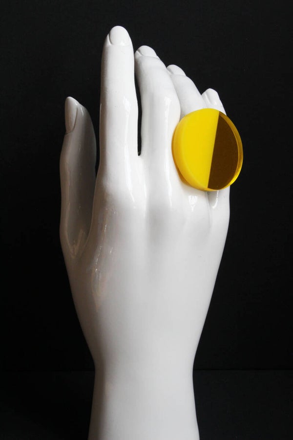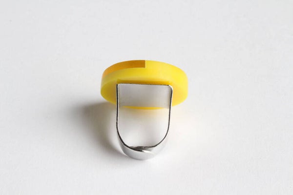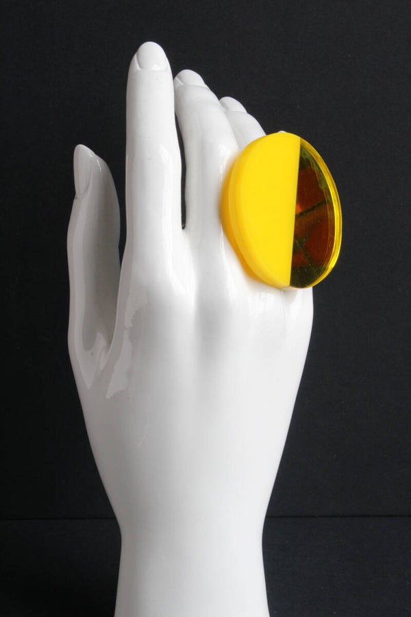Verstelbare metalen ring van geel en geel-spiegel acrylaat