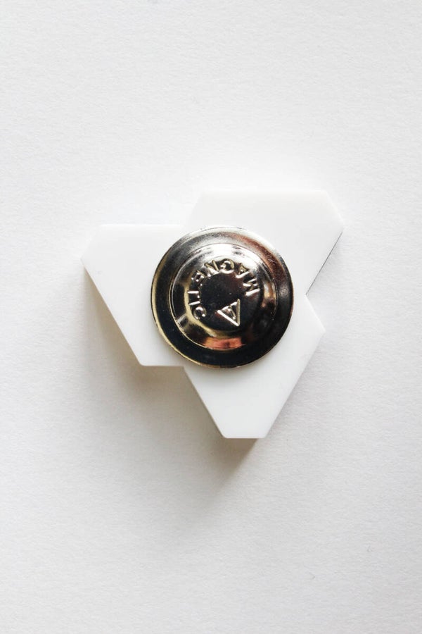 Met naar keuze een magneetje of pin aan de achterkant te bevestigen.