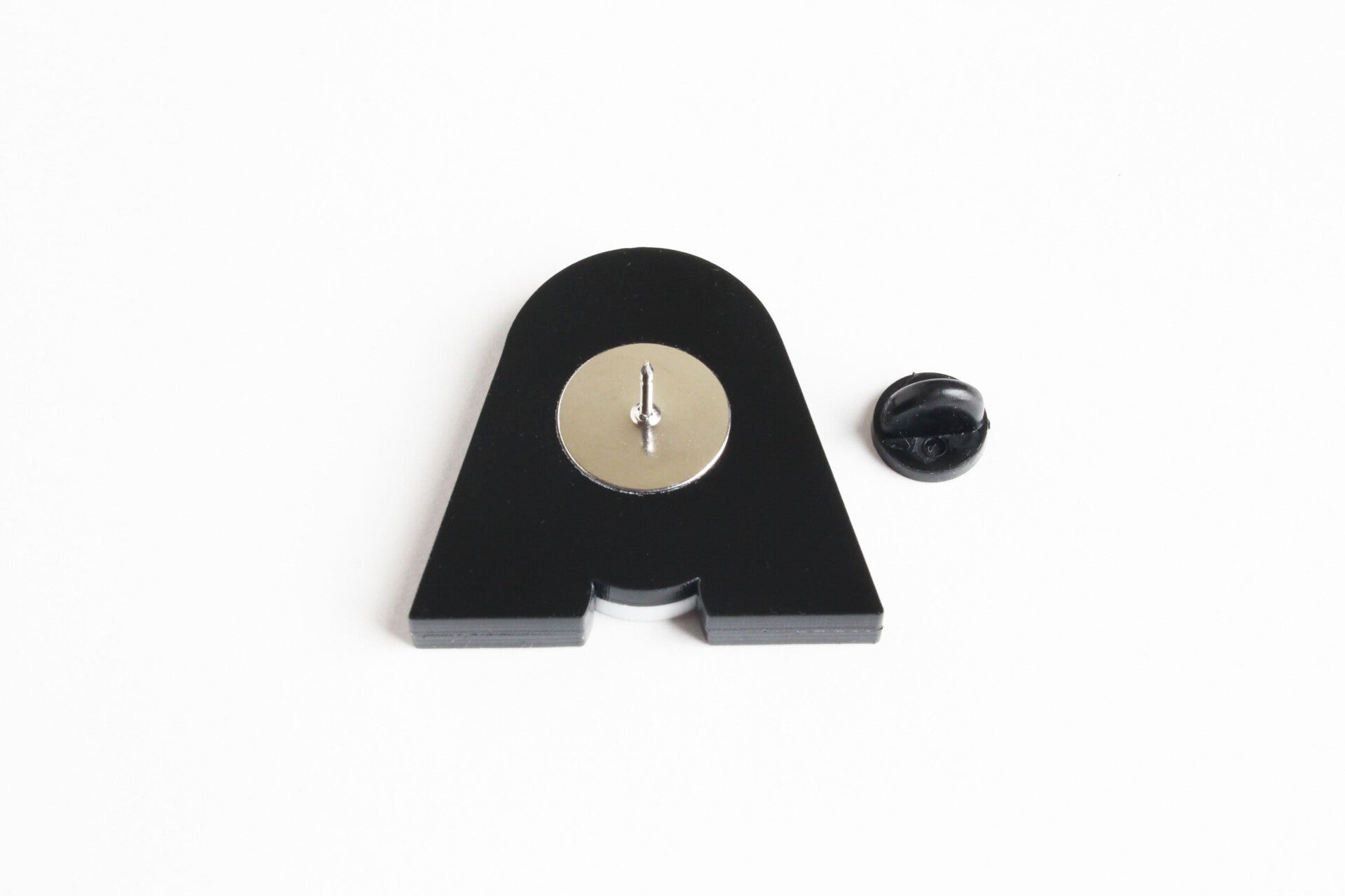 Door middel van een metalen pin en rubberen dopje aan de achterkant kun je de broche vastmaken.