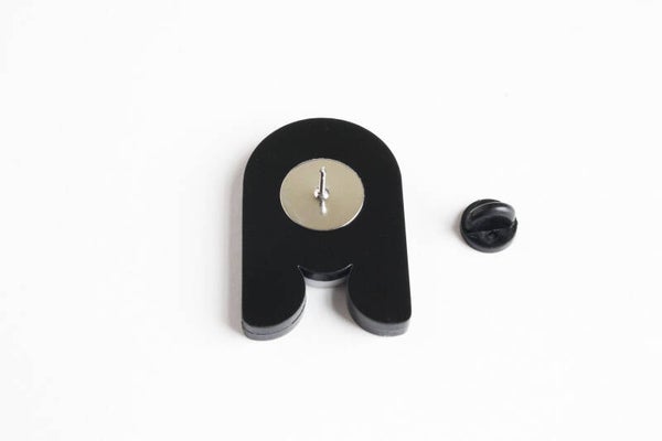 Door middel van een metalen pin en rubberen dopje aan de achterkant kun je de broche vastmaken.