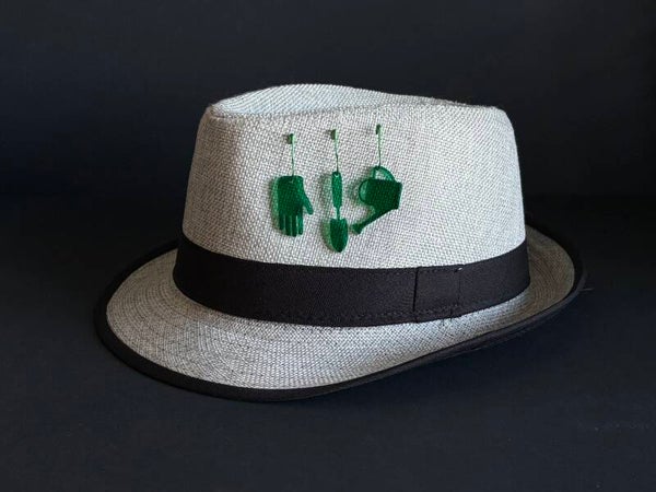 Serie van 3 speldjes "Tuinieren" in transparant groen acrylaat.