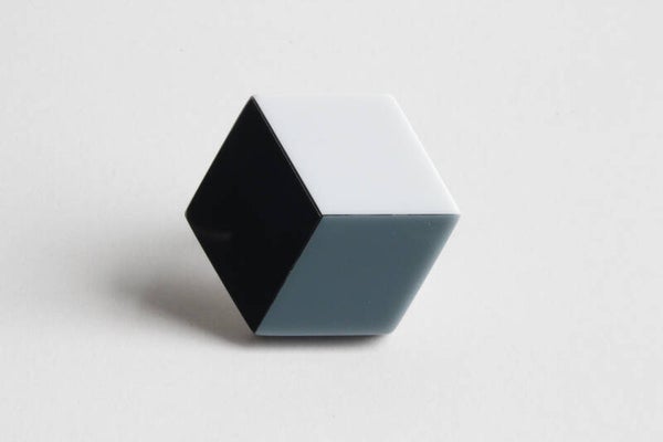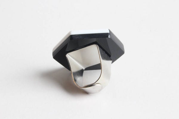Verstelbare metalen ring "Kubus" van wit, zwart en grijs acrylaat
