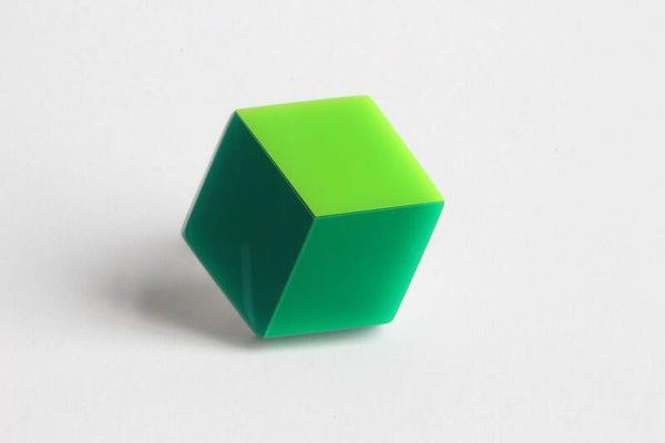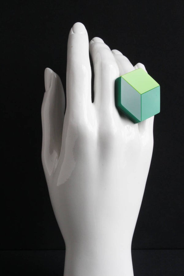 Verstelbare metalen ring "Kubus" van drie kleuren groen acrylaat
