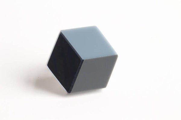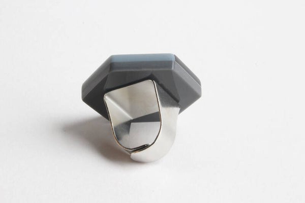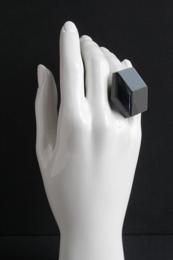 Verstelbare metalen ring "Kubus" van lichtgrijs, donkergrijs en spiegelgrijs acrylaat