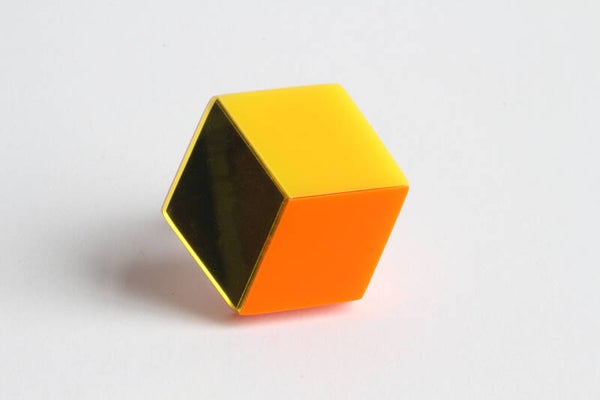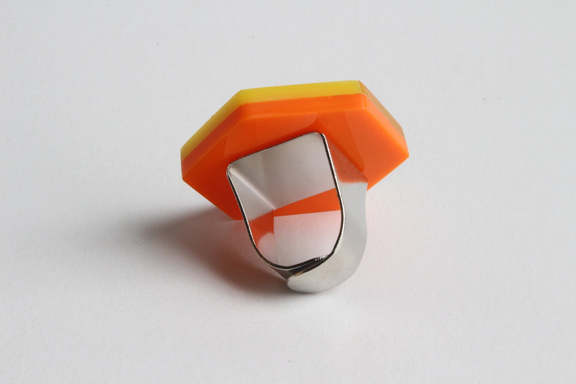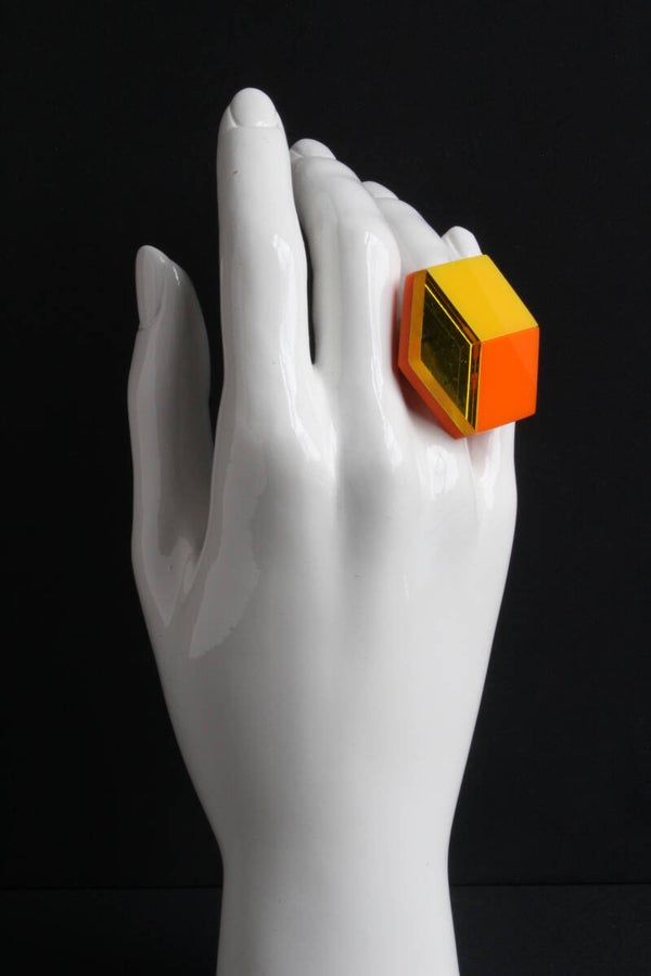 Verstelbare metalen ring "Kubus" van geel, oranje en spiegelgeel acrylaat