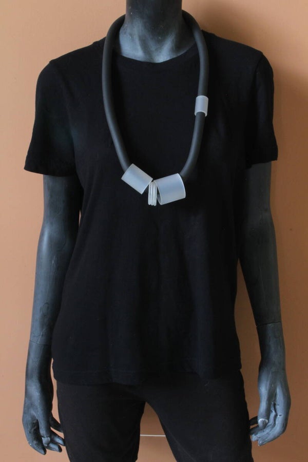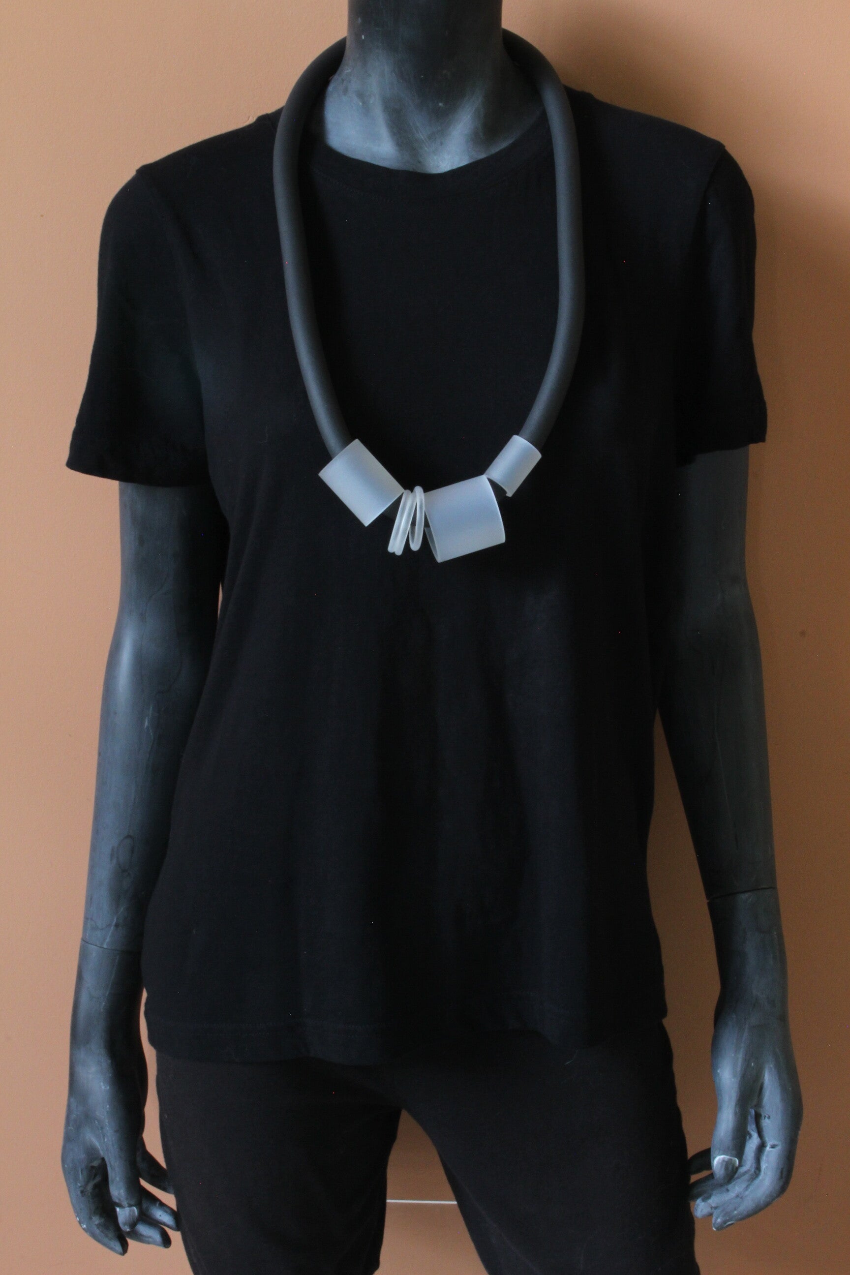 Ketting van super licht foam-rubber koord en hangers van mat acrylaat.