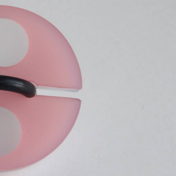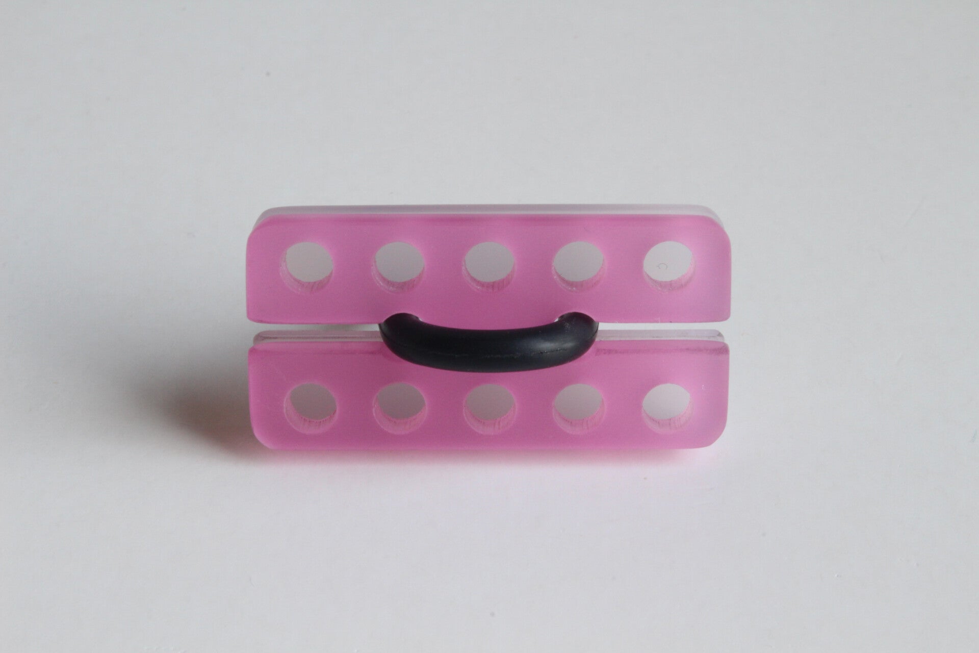 Ring van mat opaal en gekleurd semi transparant acrylaat aan rubberen ring.