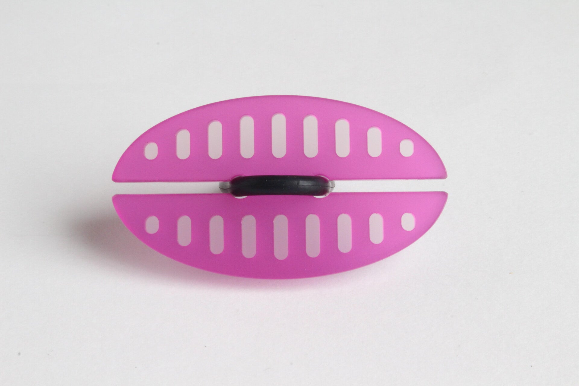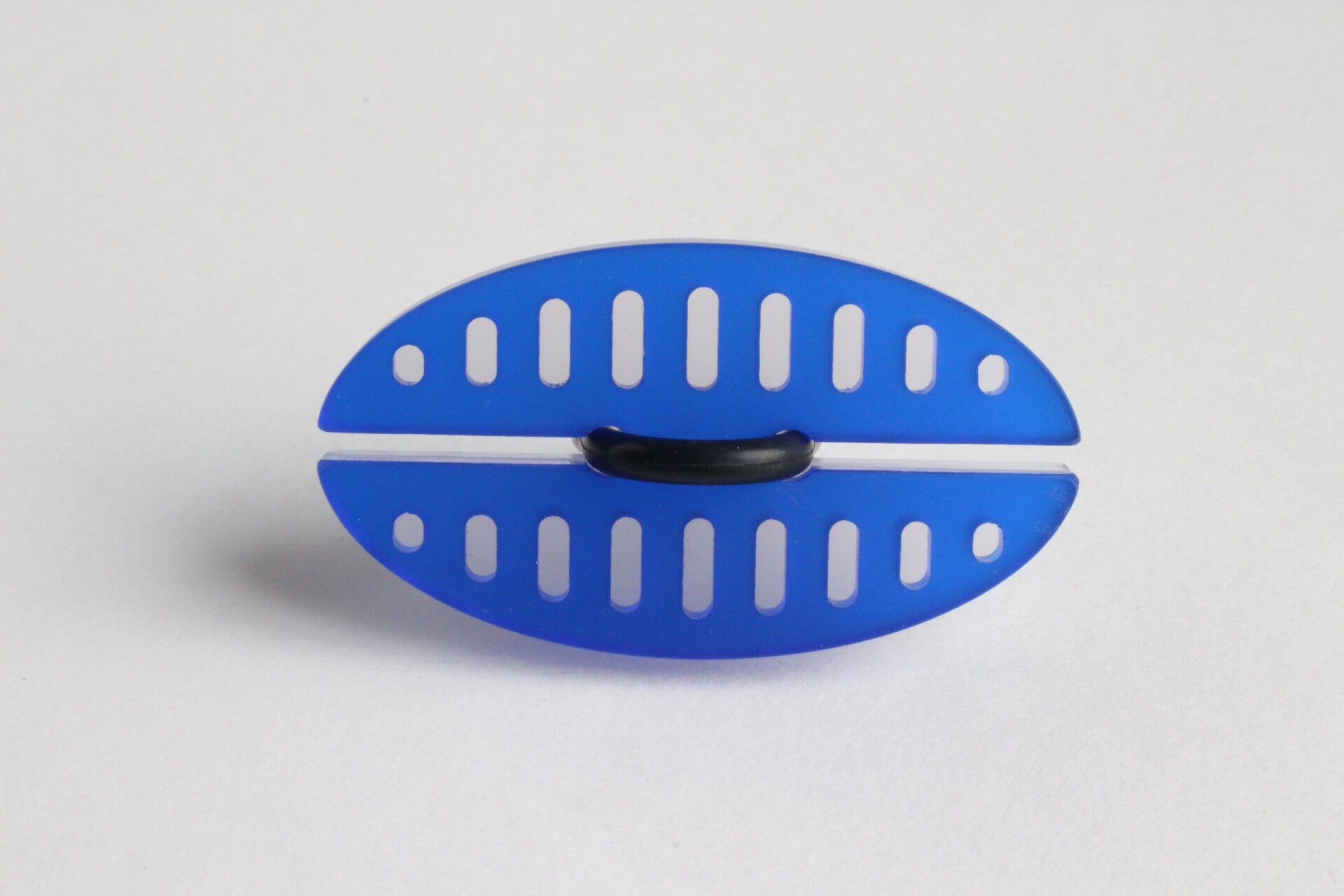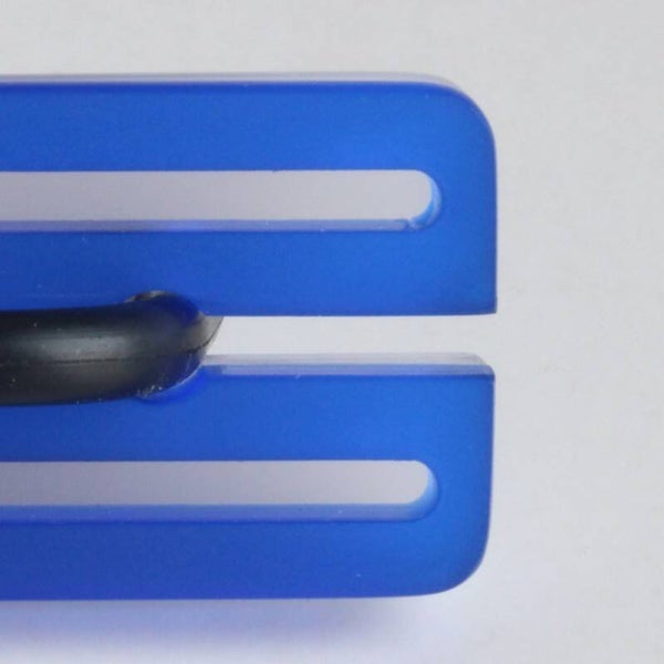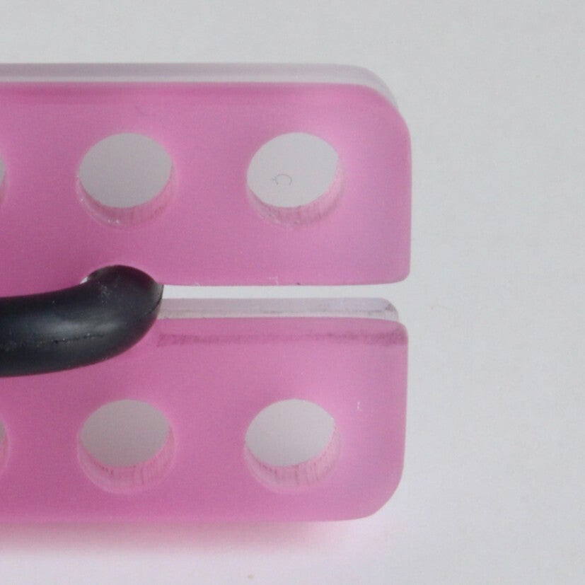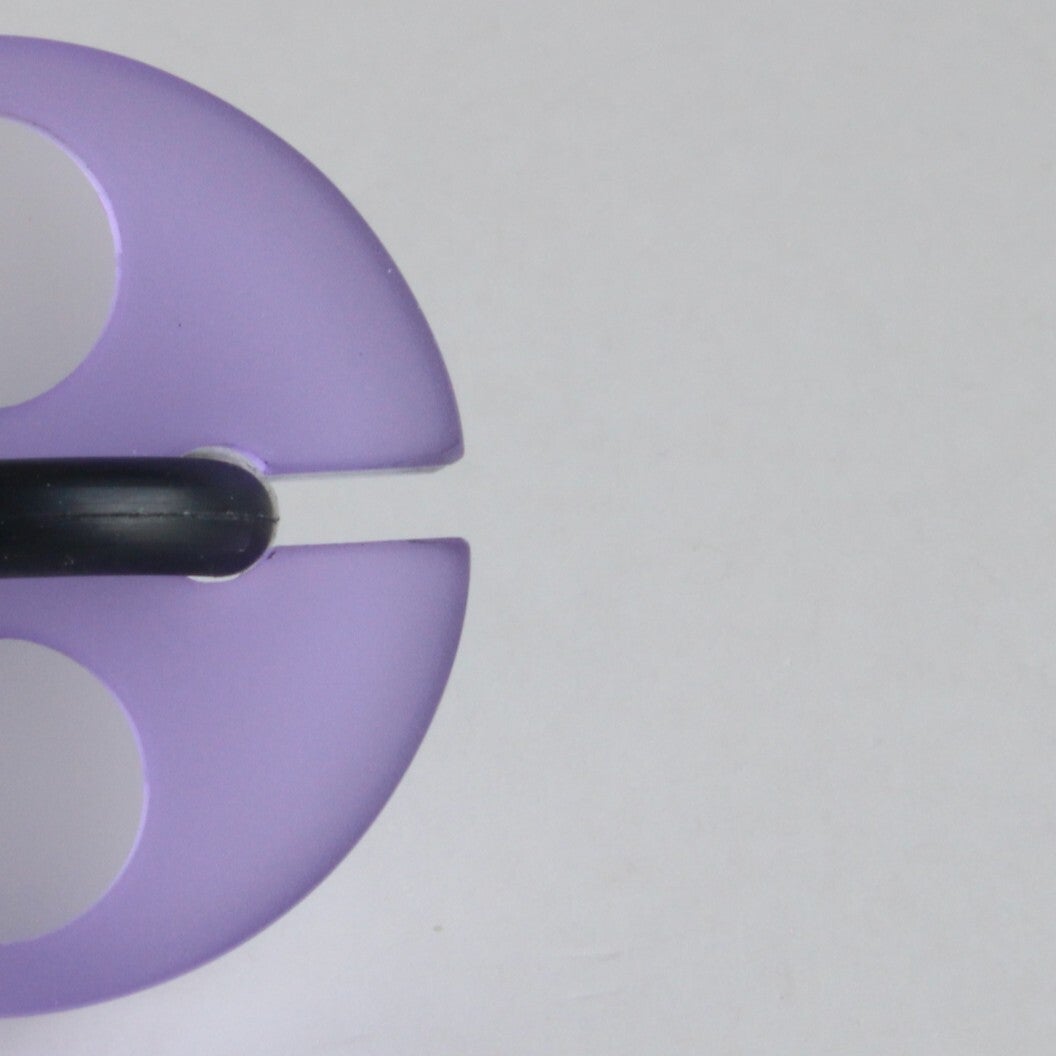 Ring van mat opaal en gekleurd semi transparant acrylaat aan rubberen ring.