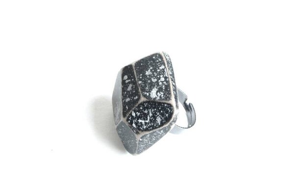 Verstelbare gunmetal ring (1,7 cm) van geverfd beukenhout.