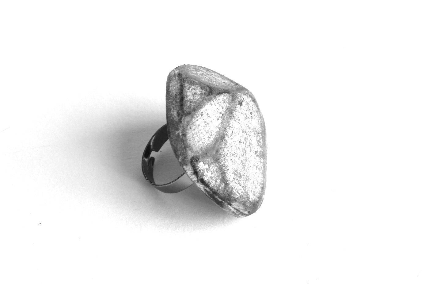 Verstelbare gunmetal ring (1,7 cm) van geverfd beukenhout en bladzilver.