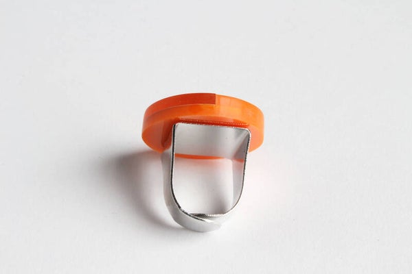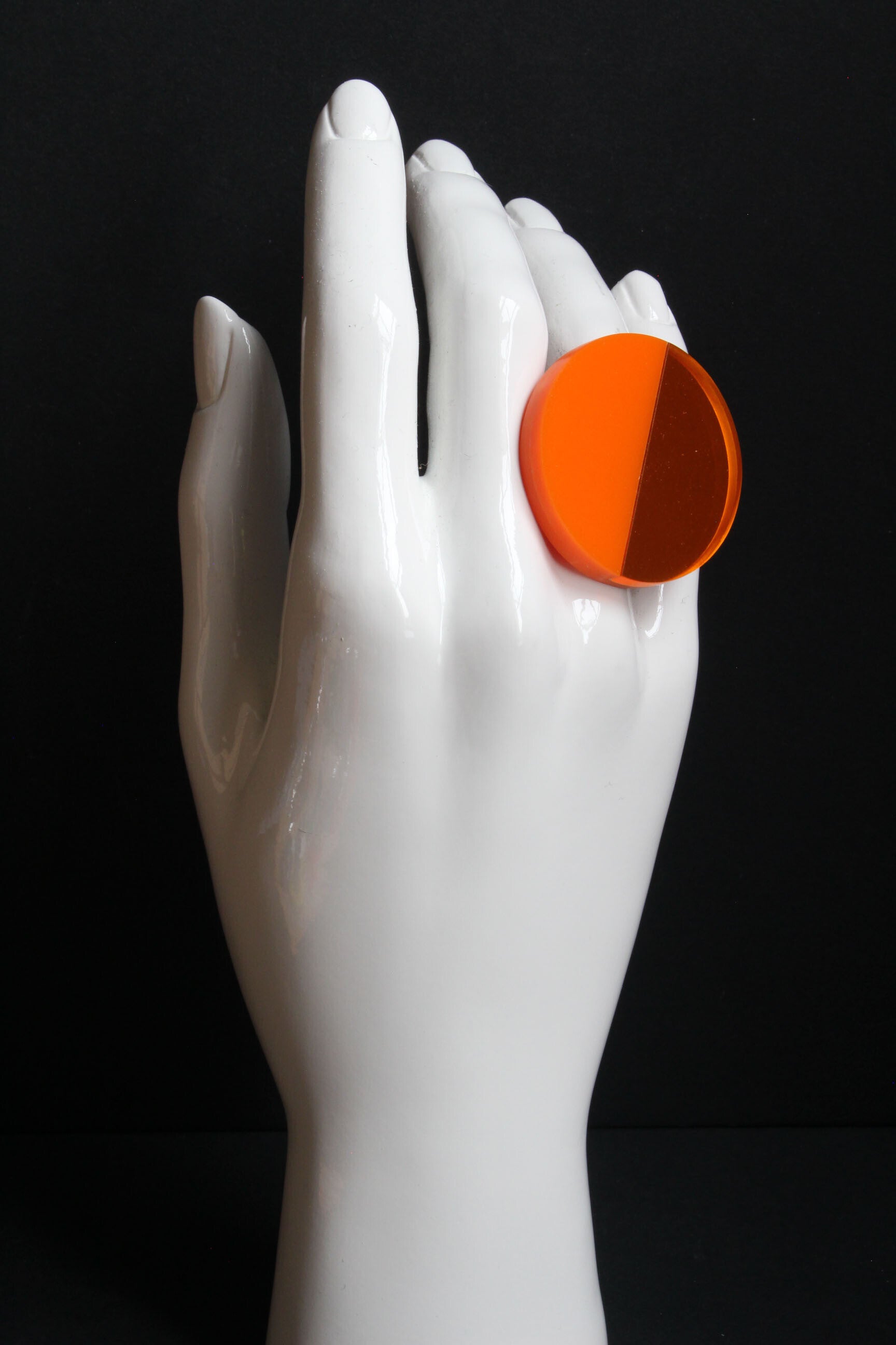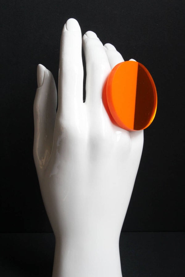 Verstelbare metalen ring van oranje en oranje spiegelacrylaat.