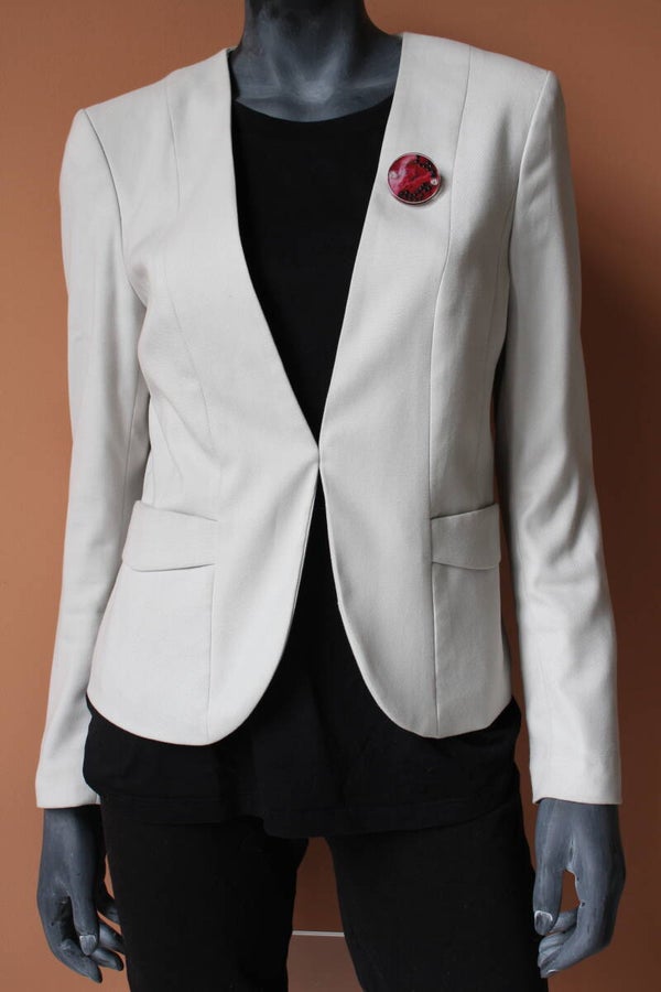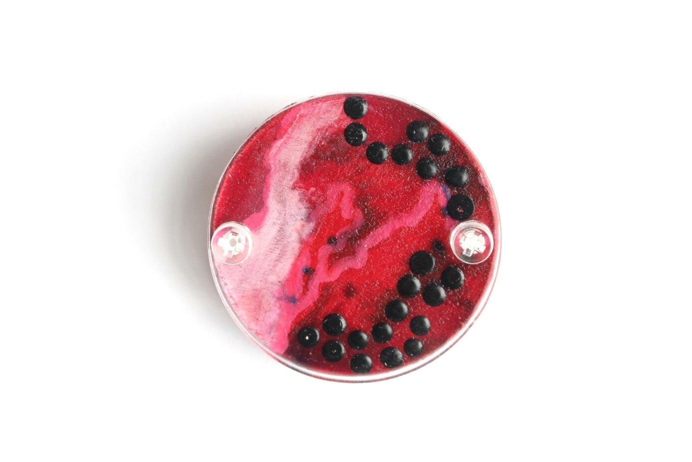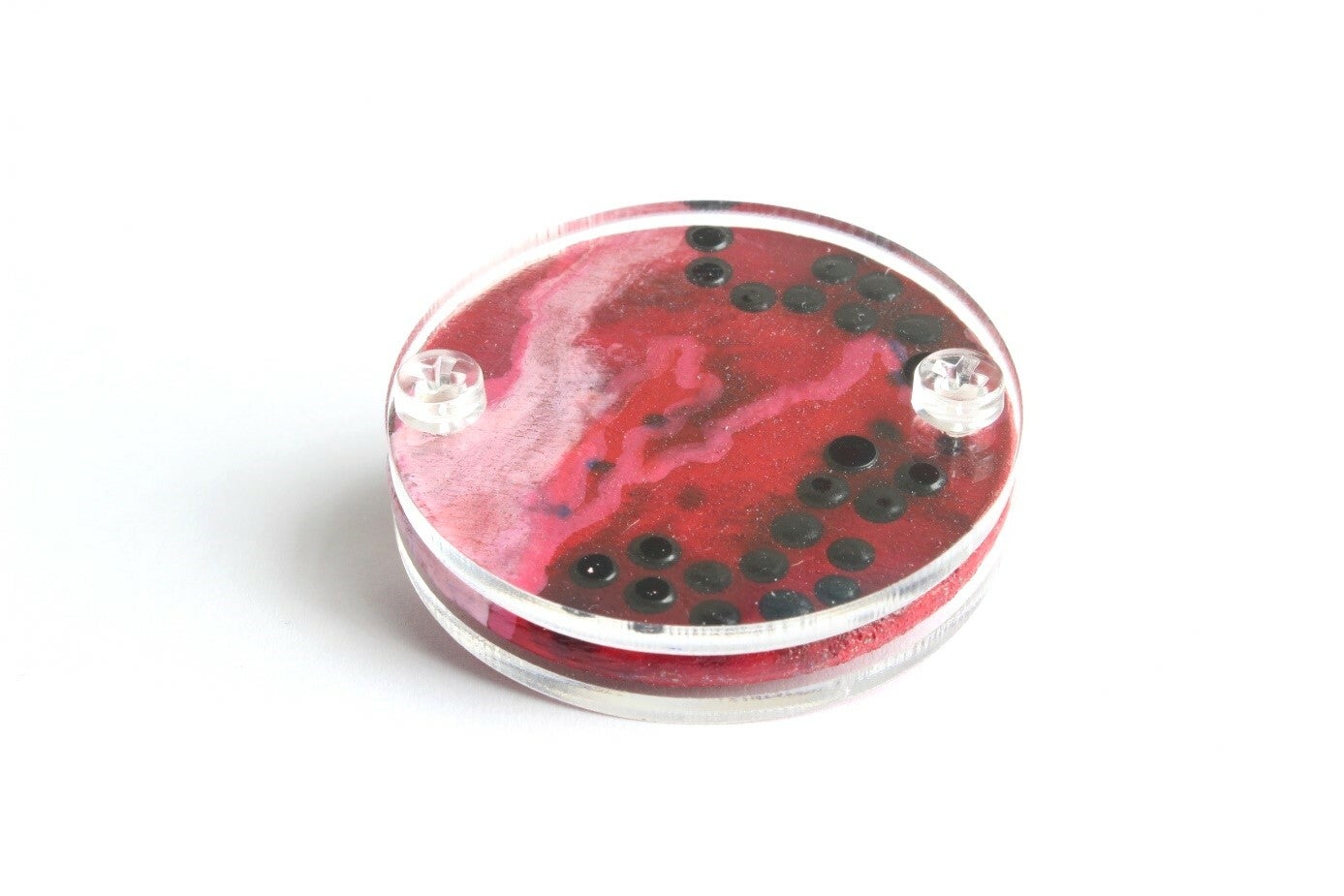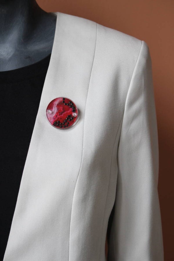 Broche van geschilderd beukenhout gevat tussen acrylaat plaatjes