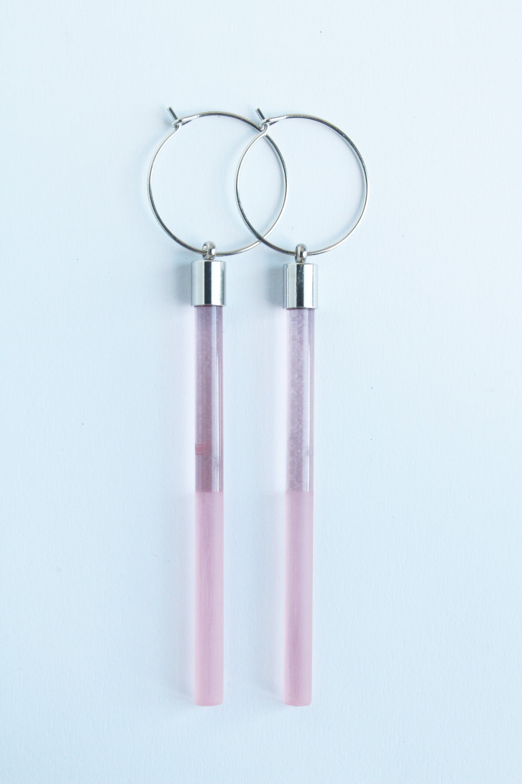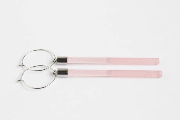 Oorbellen van transparant licht roze acrylaat 1/2 glans - 1/2 mat