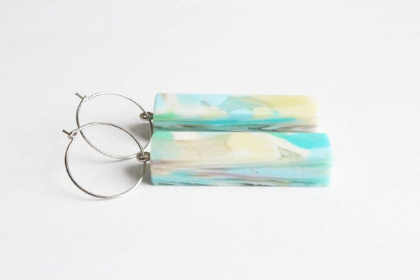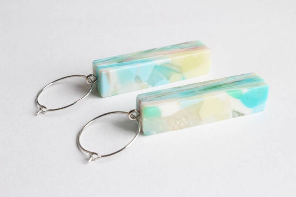 Oorbellen van gerecycled acrylaat.