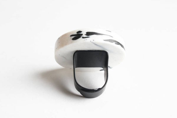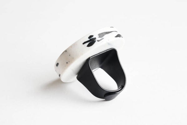 Verstelbare zwart gecoate ring van gerecycled acrylaat.