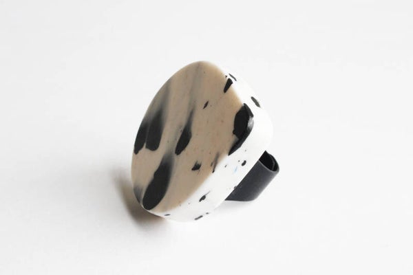 Verstelbare zwart gecoate ring van gerecycled acrylaat.