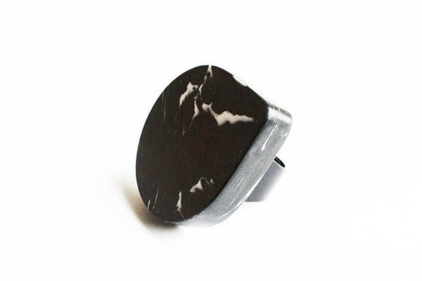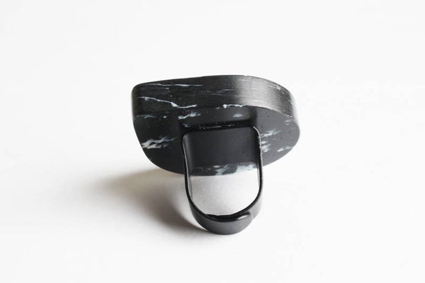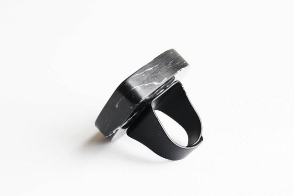 Verstelbare zwart gecoate ring van gerecycled acrylaat.