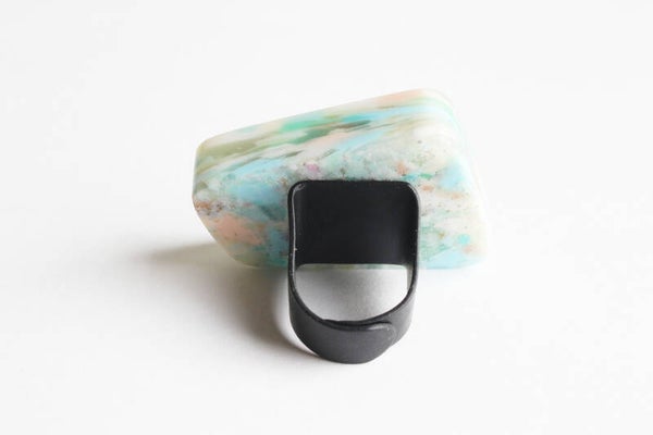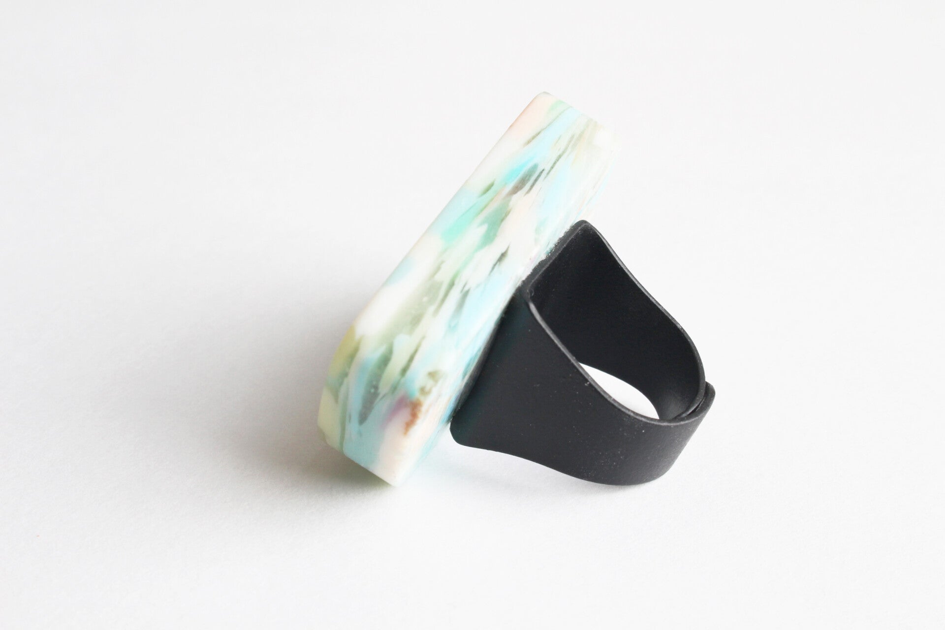 Verstelbare zwart gecoate ring van gerecycled acrylaat.