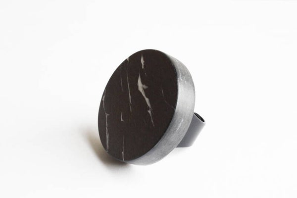 Verstelbare zwart gecoate ring van gerecycled acrylaat.