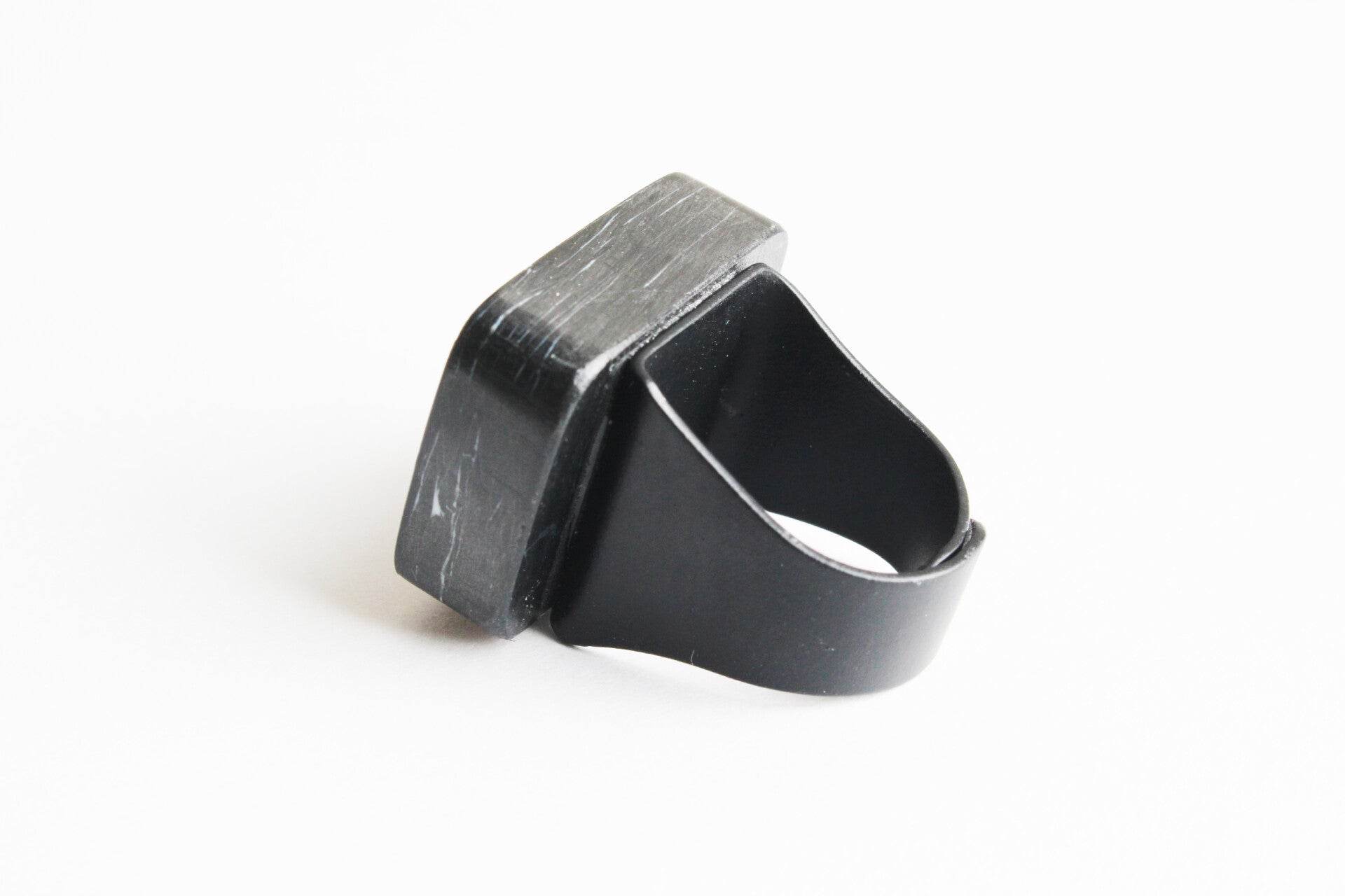 Verstelbare zwart gecoate ring van gerecycled acrylaat.