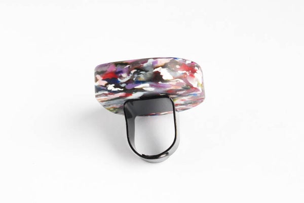 Verstelbare zwart gecoate ring van gerecycled acrylaat.