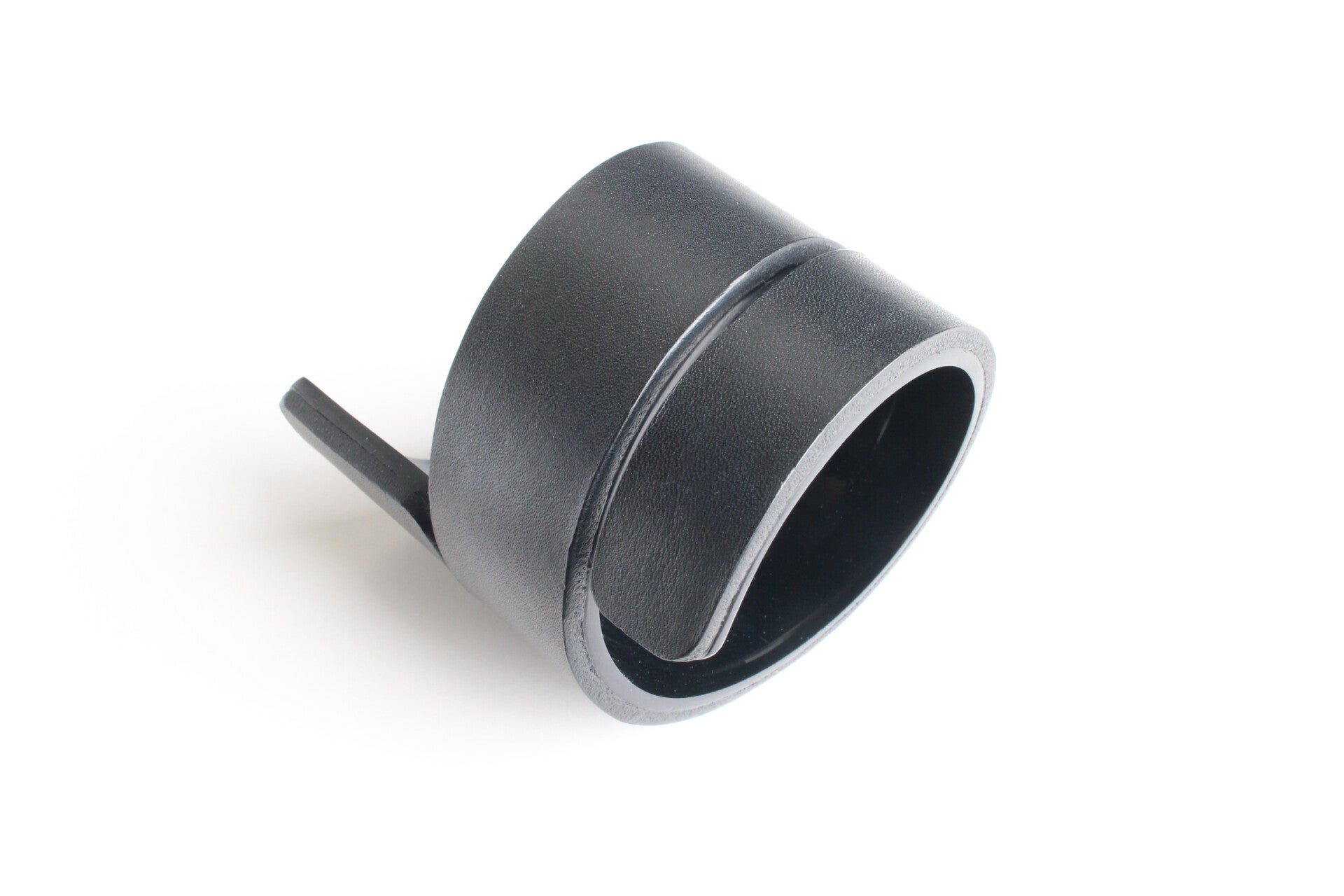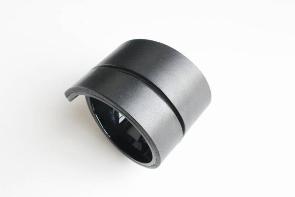 Armband van zwart opaque acrylaat / plexiglas en zwart tuigleer. Het leer is voorzien van een wax om het materiaal te beschermen tegen vocht en vuil.Binnenmaat ± 7 cm doorsnee