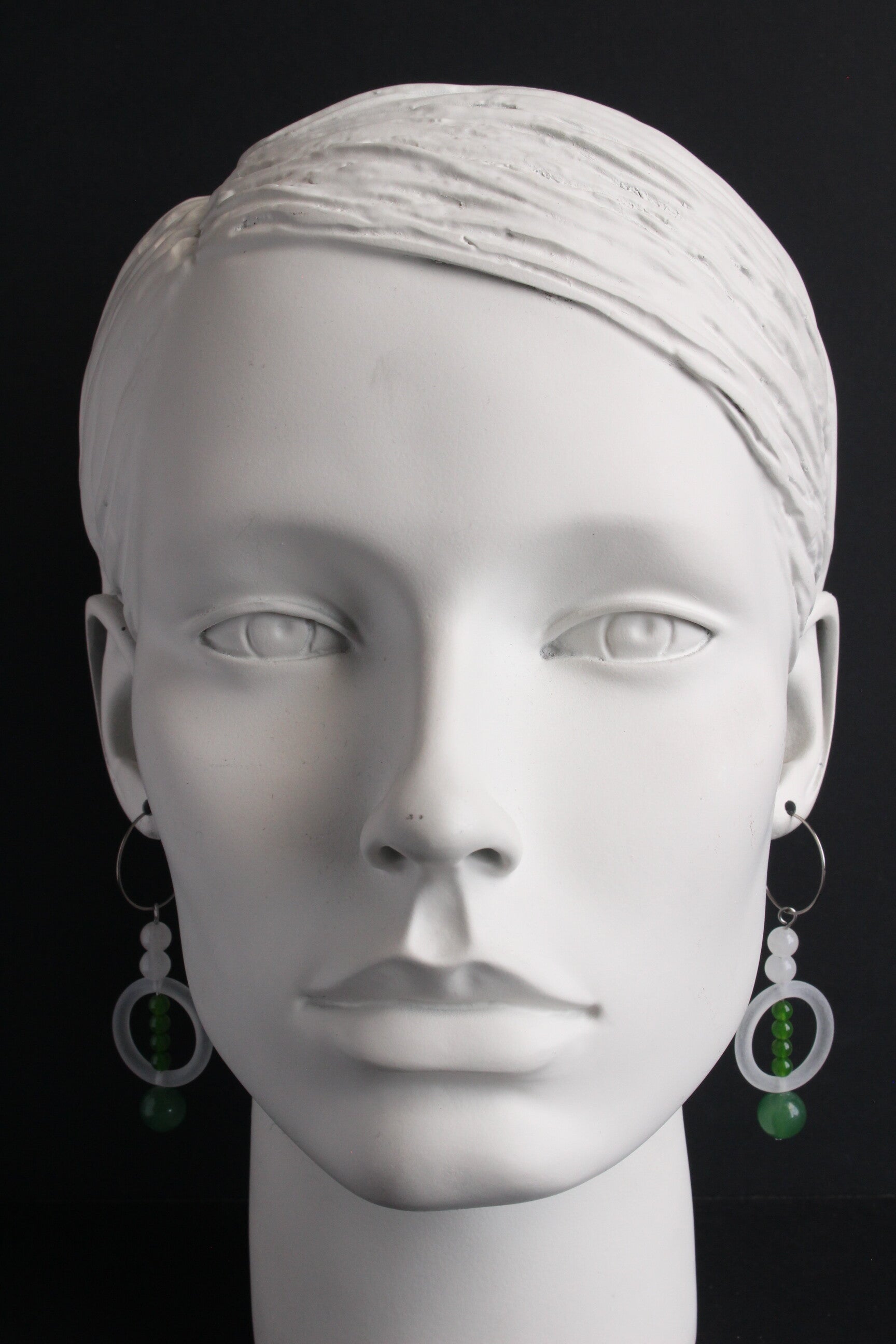 Oorbellen van opaal acrylaat, amethist, smaragd edelsteen en witte jade aan oorringen van rvs.