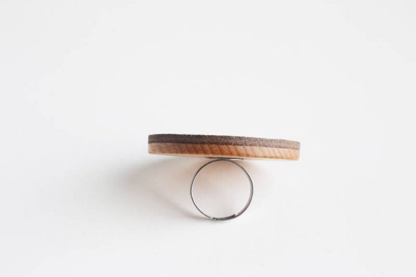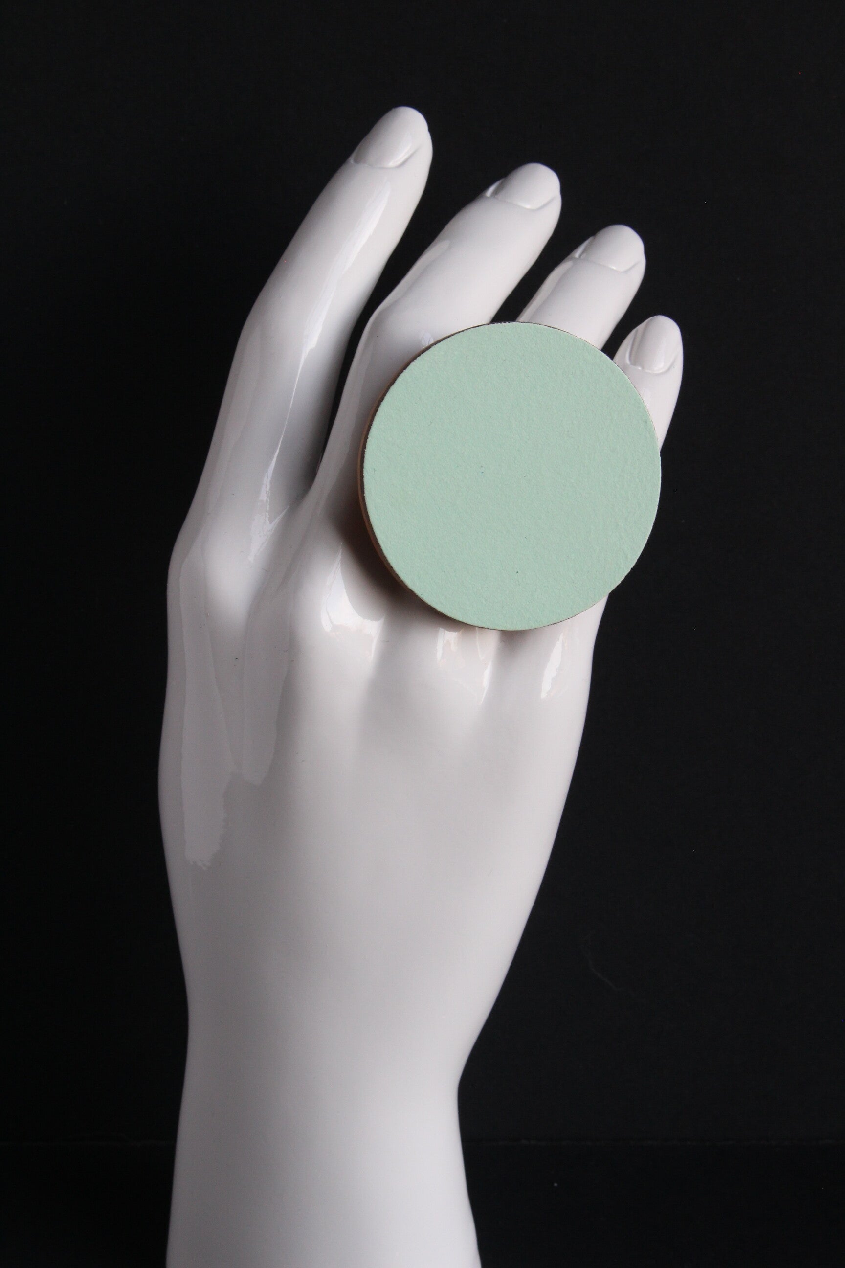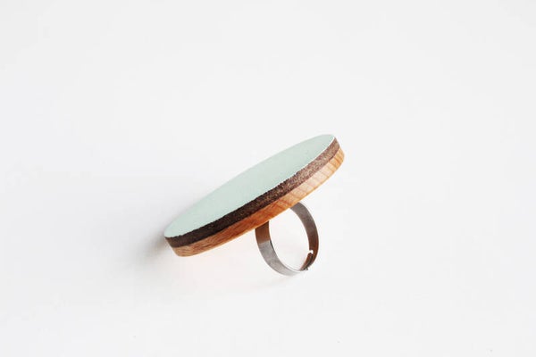 Verstelbare rvs ring (1,9 cm) van beukenhout gelamineerd met mintkleurig splitleer