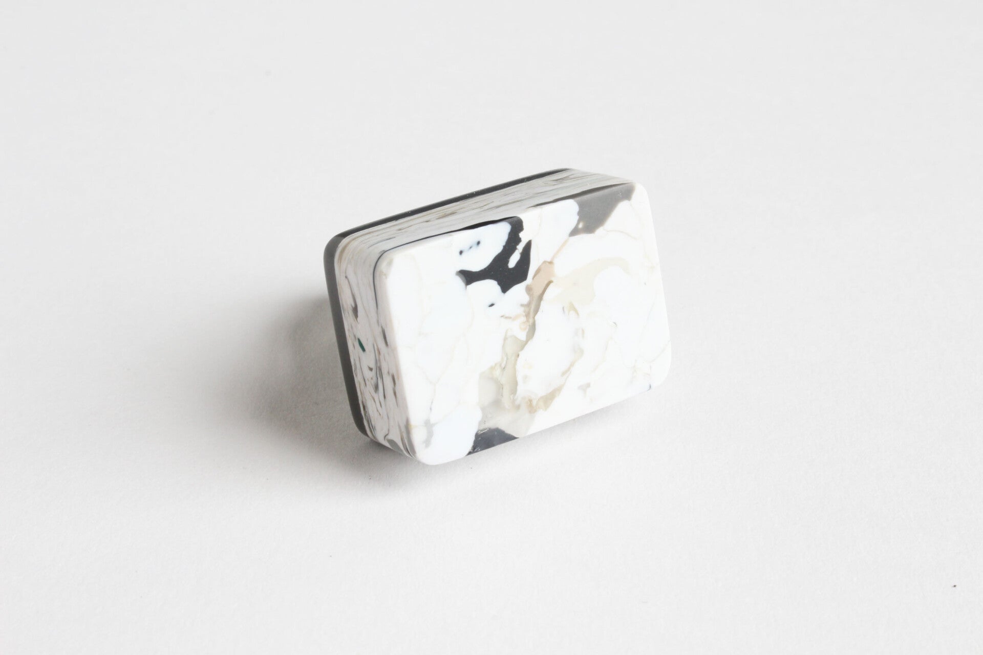 Afmetingen: 3 cm x 2,2 cm x dikte 1,3 cm, ring 1,7 x 1,9 cm