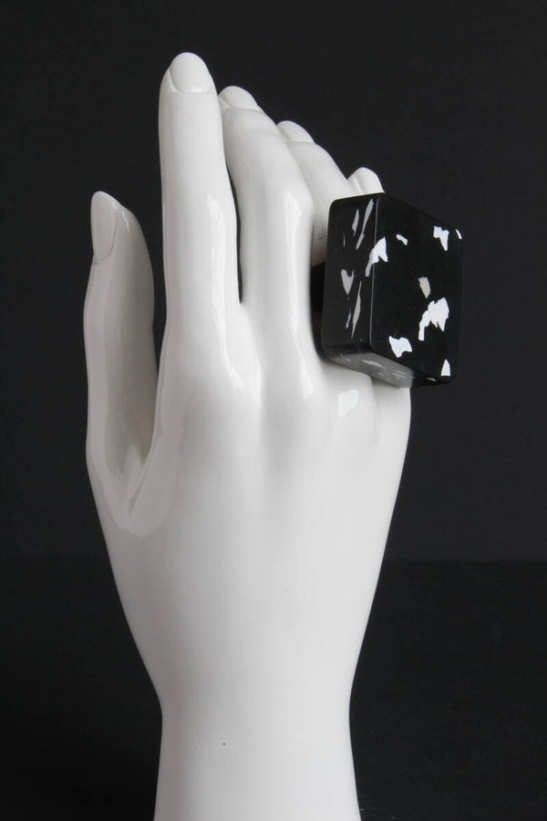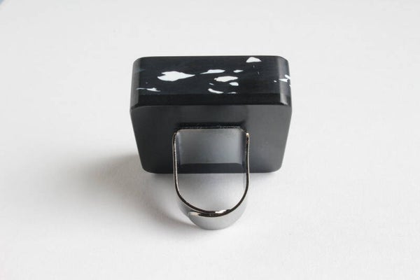 Verstelbare gunmetal ring van gerecycled acrylaat.