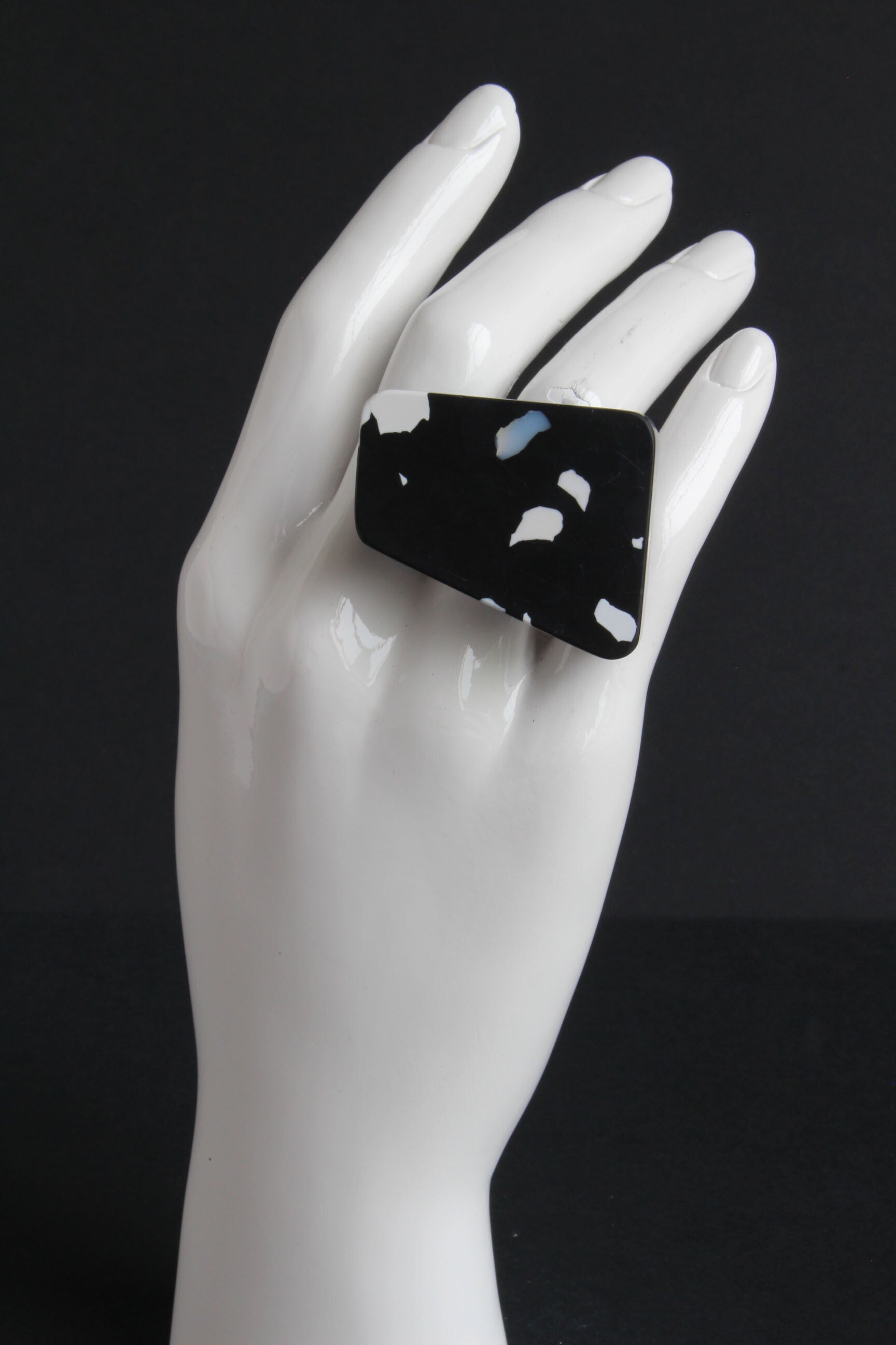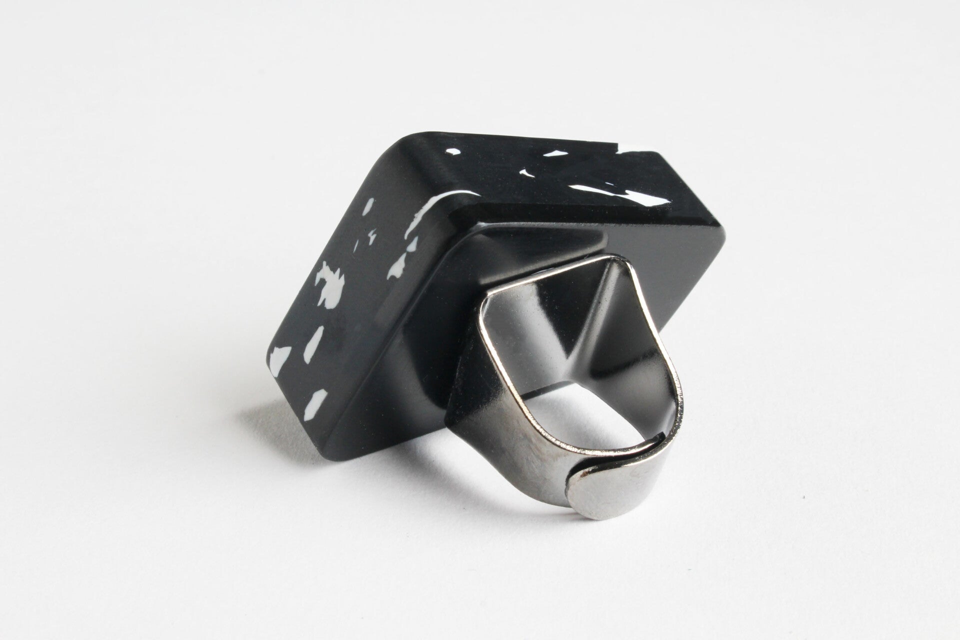 Verstelbare gunmetal ring van gerecycled acrylaat.