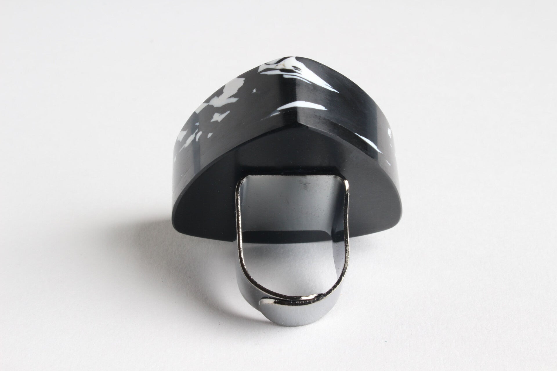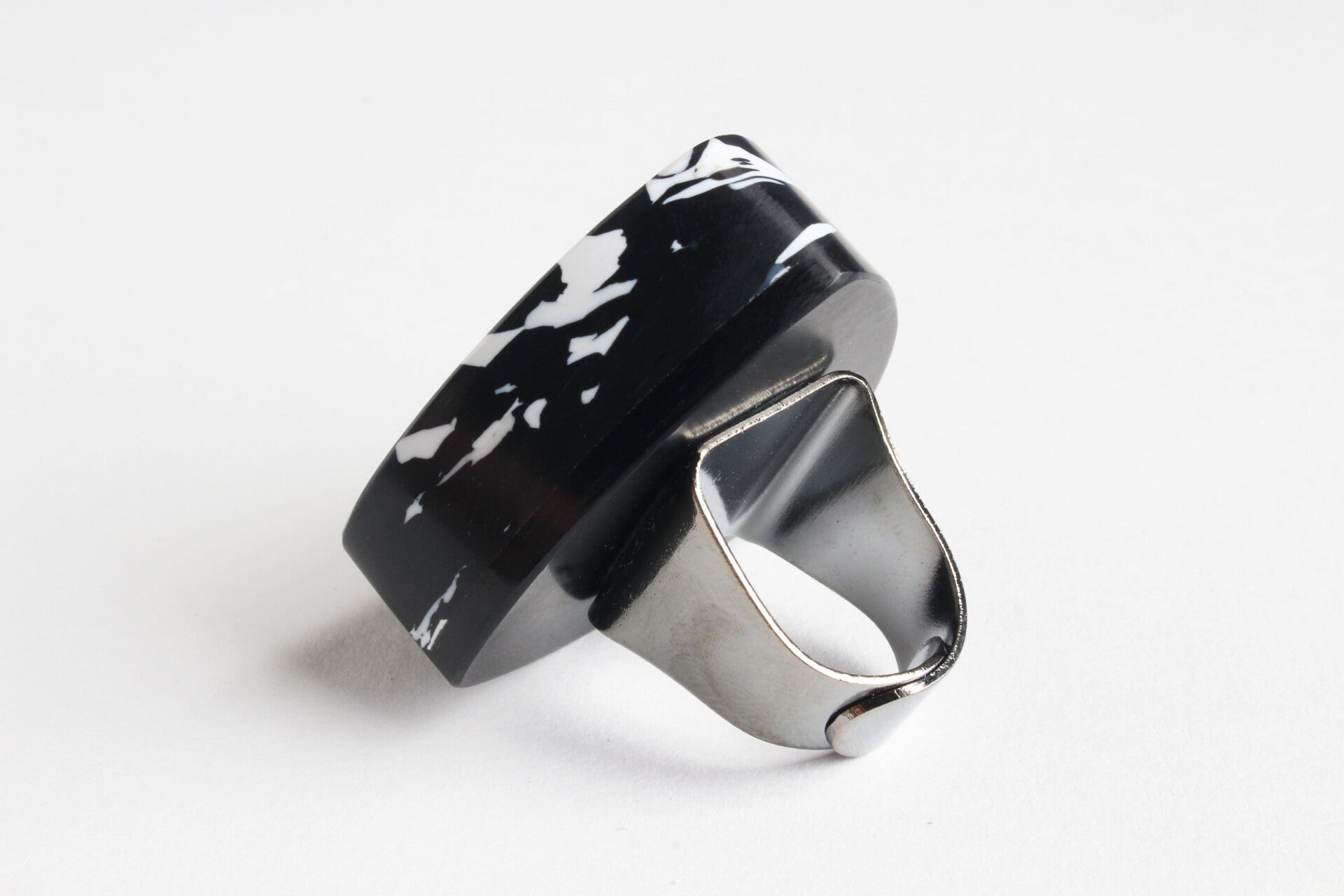 Verstelbare gunmetal ring van gerecycled acrylaat.