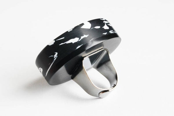Verstelbare gunmetal ring van gerecycled acrylaat.