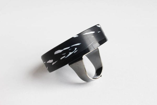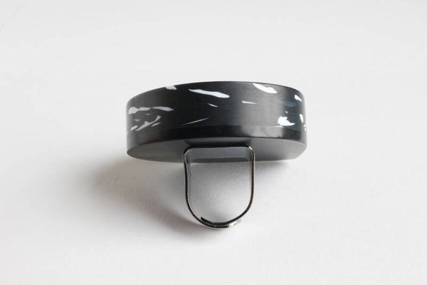 Verstelbare gunmetal ring van gerecycled acrylaat.