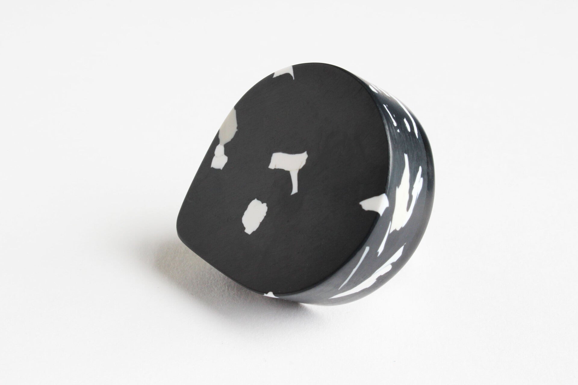 Verstelbare gunmetal ring van gerecycled acrylaat.