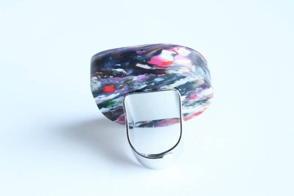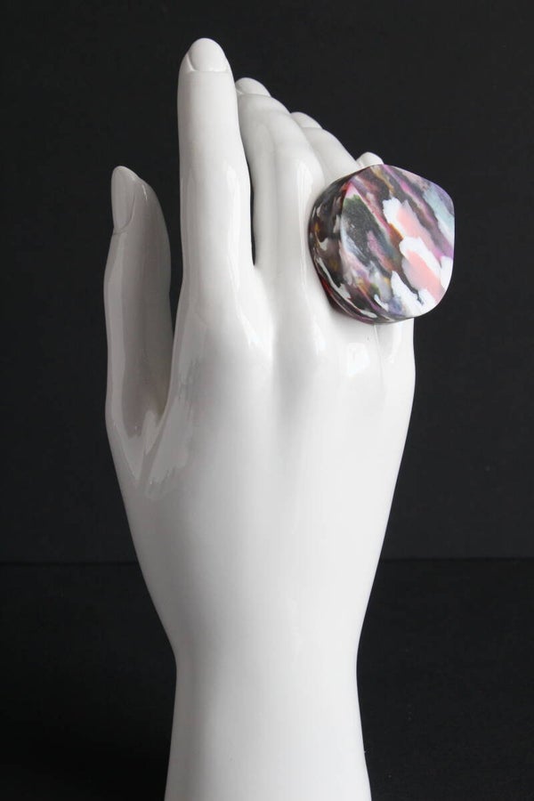 Afmetingen: 4,3 cm x 3,8 cm x dikte 1,1 cm, ring 1,7 x 1,9 cm