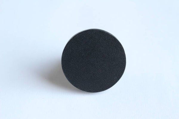 Verstelbare gunmetal ring van zwart acrylaat gelamineerd met zwart tuigleer.