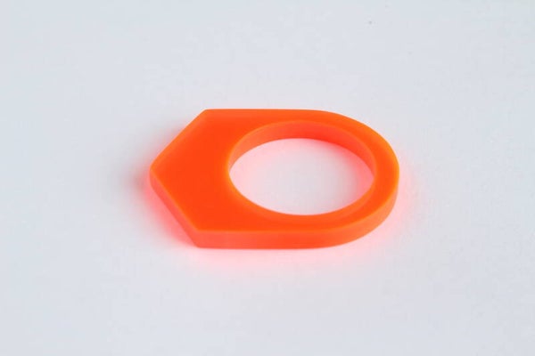 Ring van doorzichtig neon-oranje acrylaat met matgeschuurde randen.