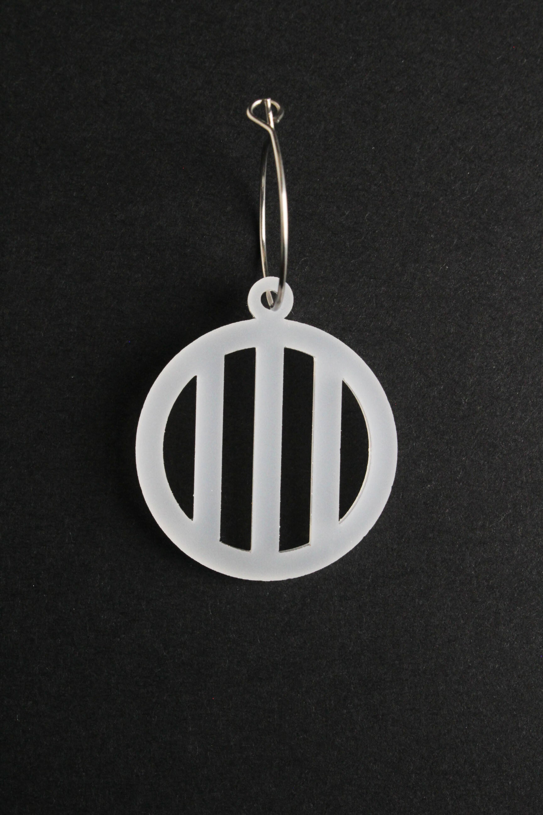 Oorbellen van opaal wit acrylaat aan oorringen van hypoallergeen rvs.